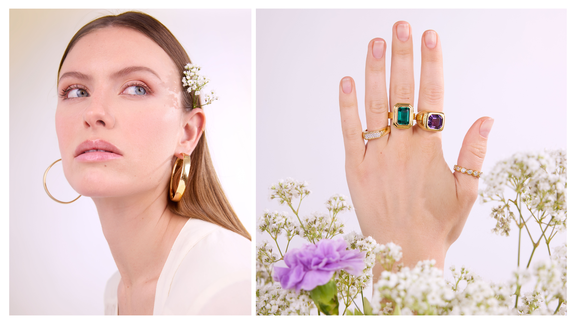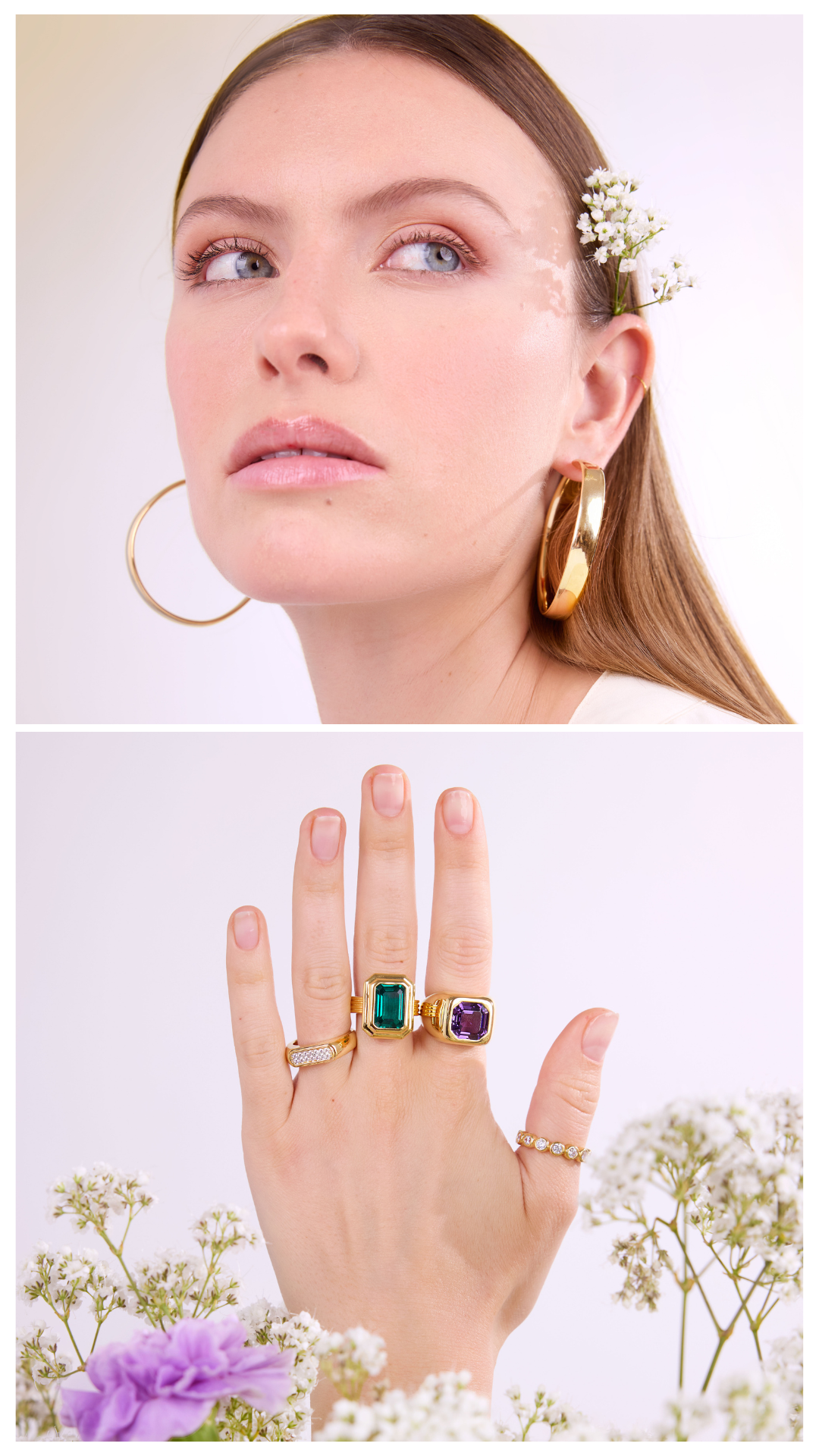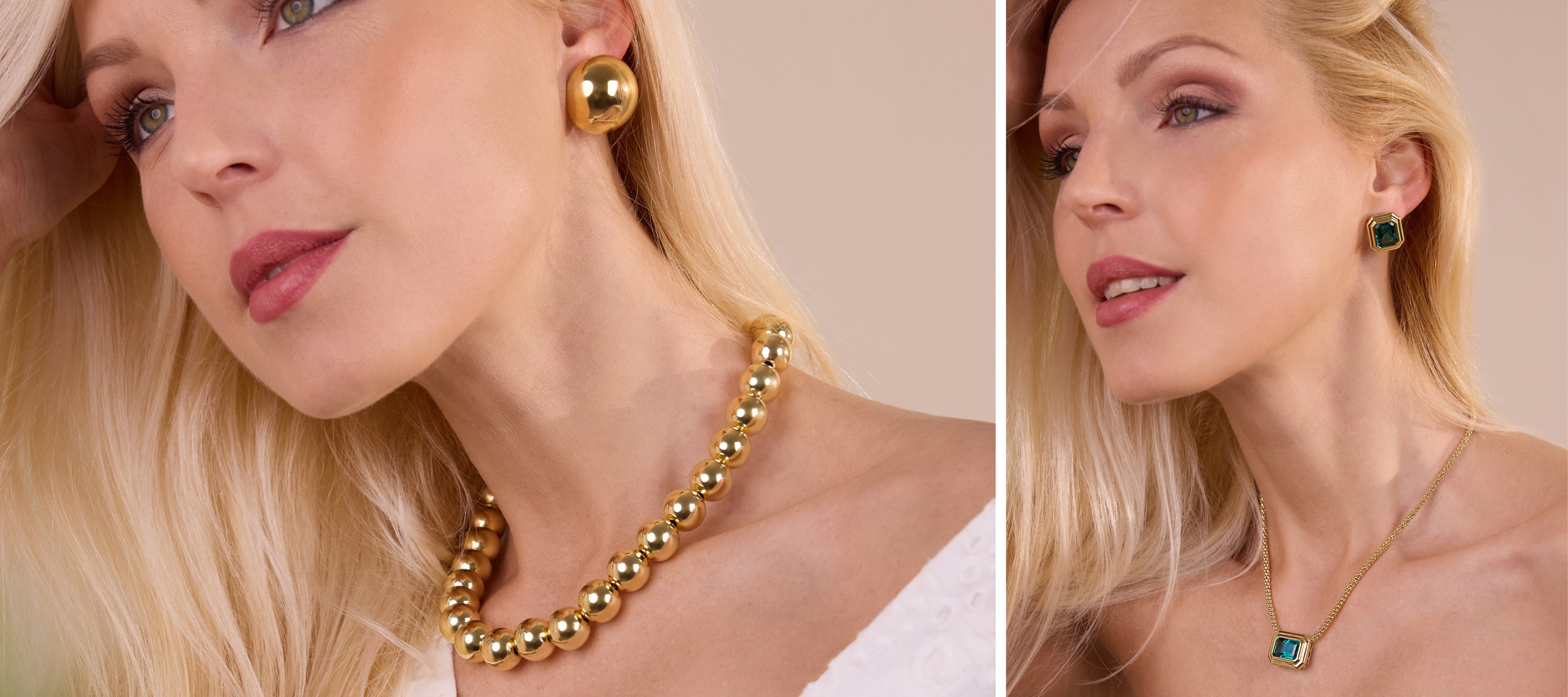 Oro, perle e pietre naturali si intrecciano in creazioni che parlano di femminilità, eleganza e luce interiore.
