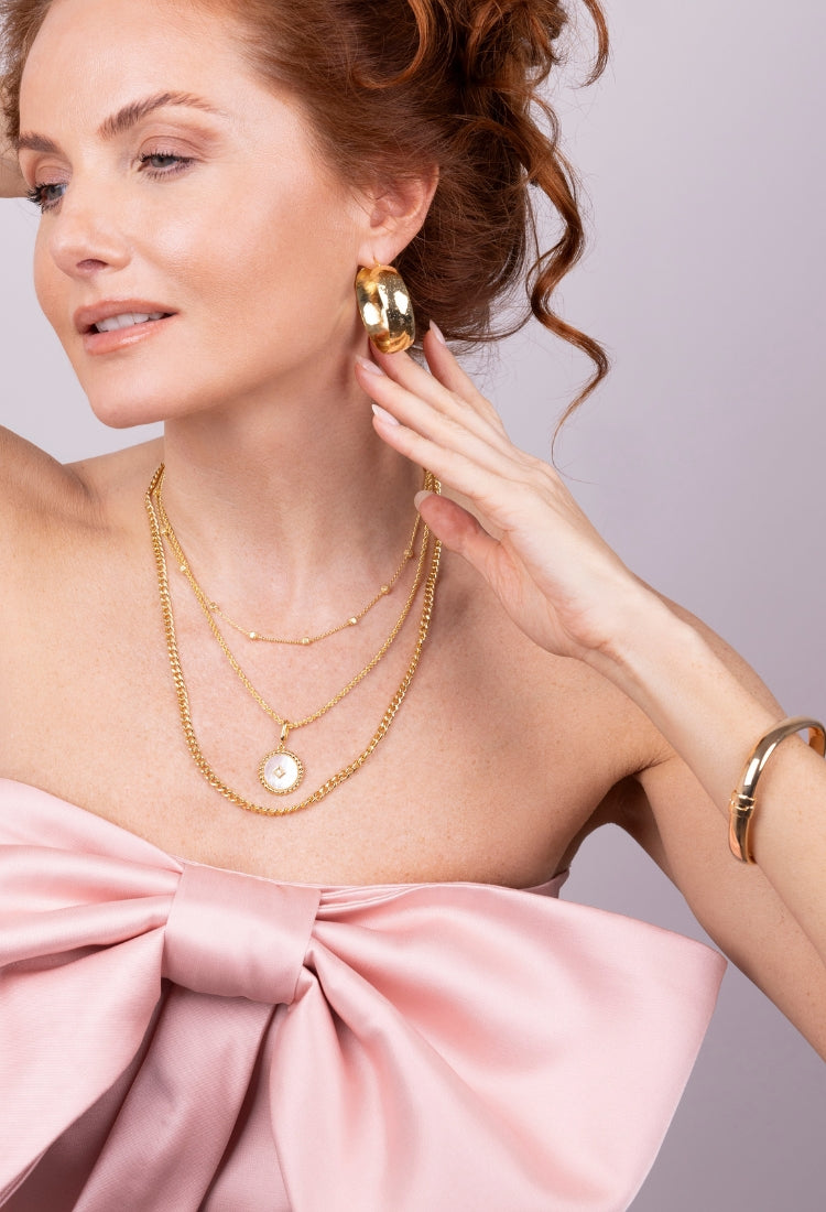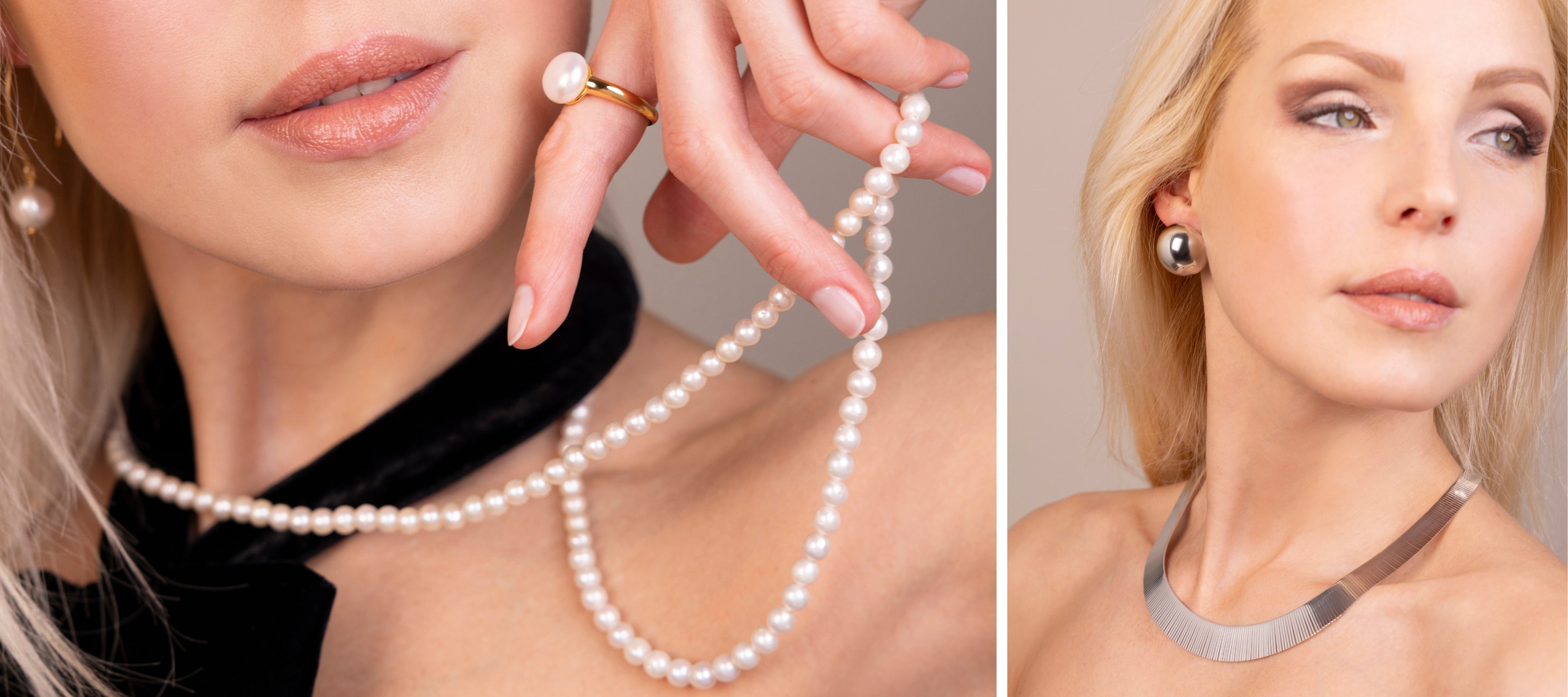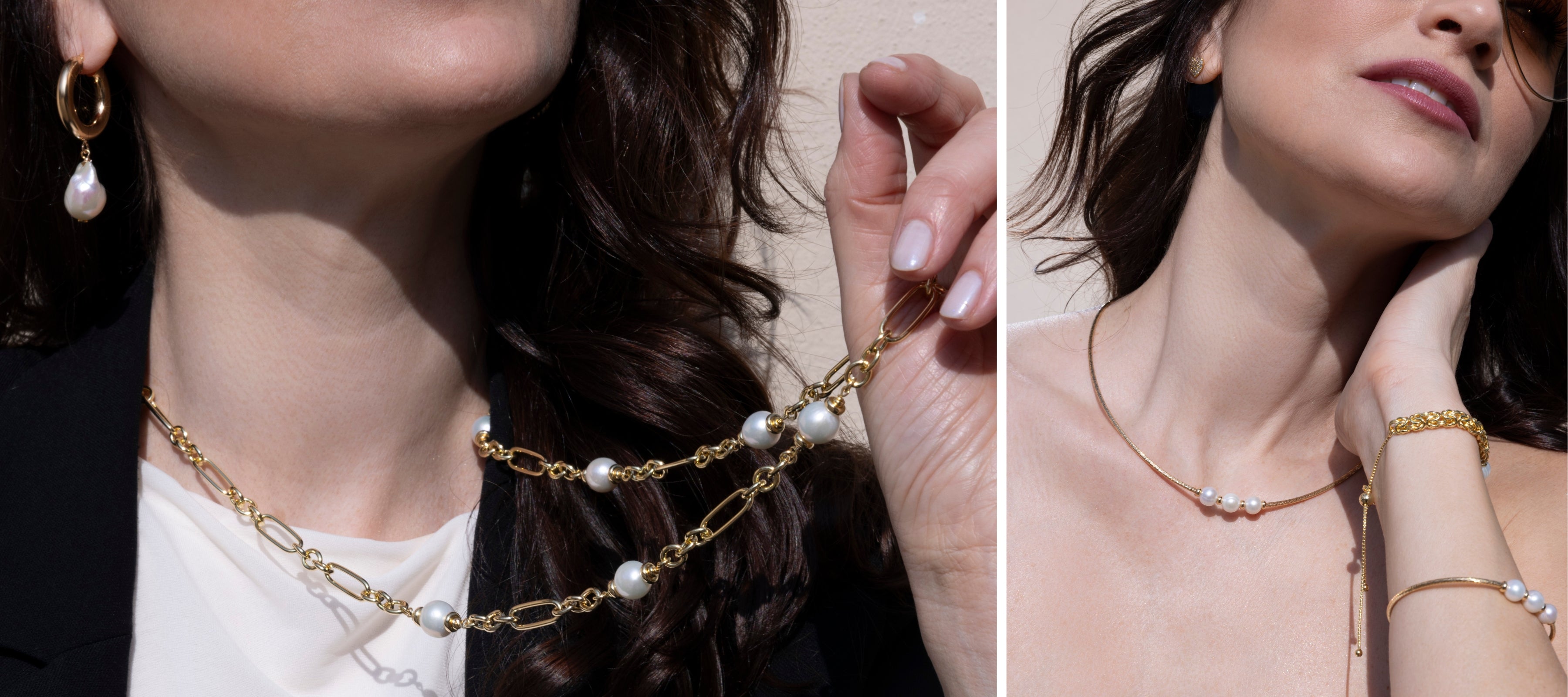 Oro, perle e pietre naturali si intrecciano in creazioni che parlano di femminilità, eleganza e luce interiore.