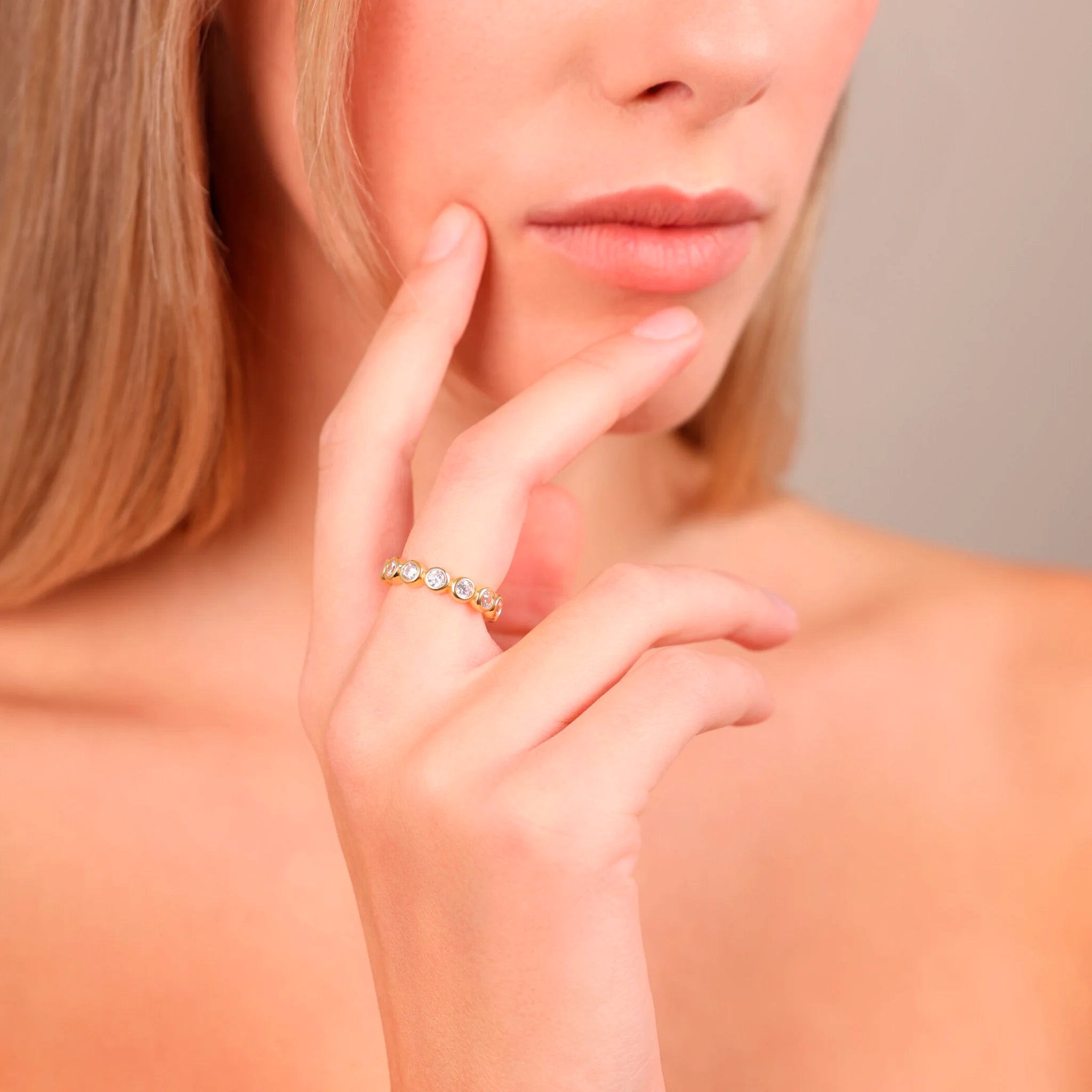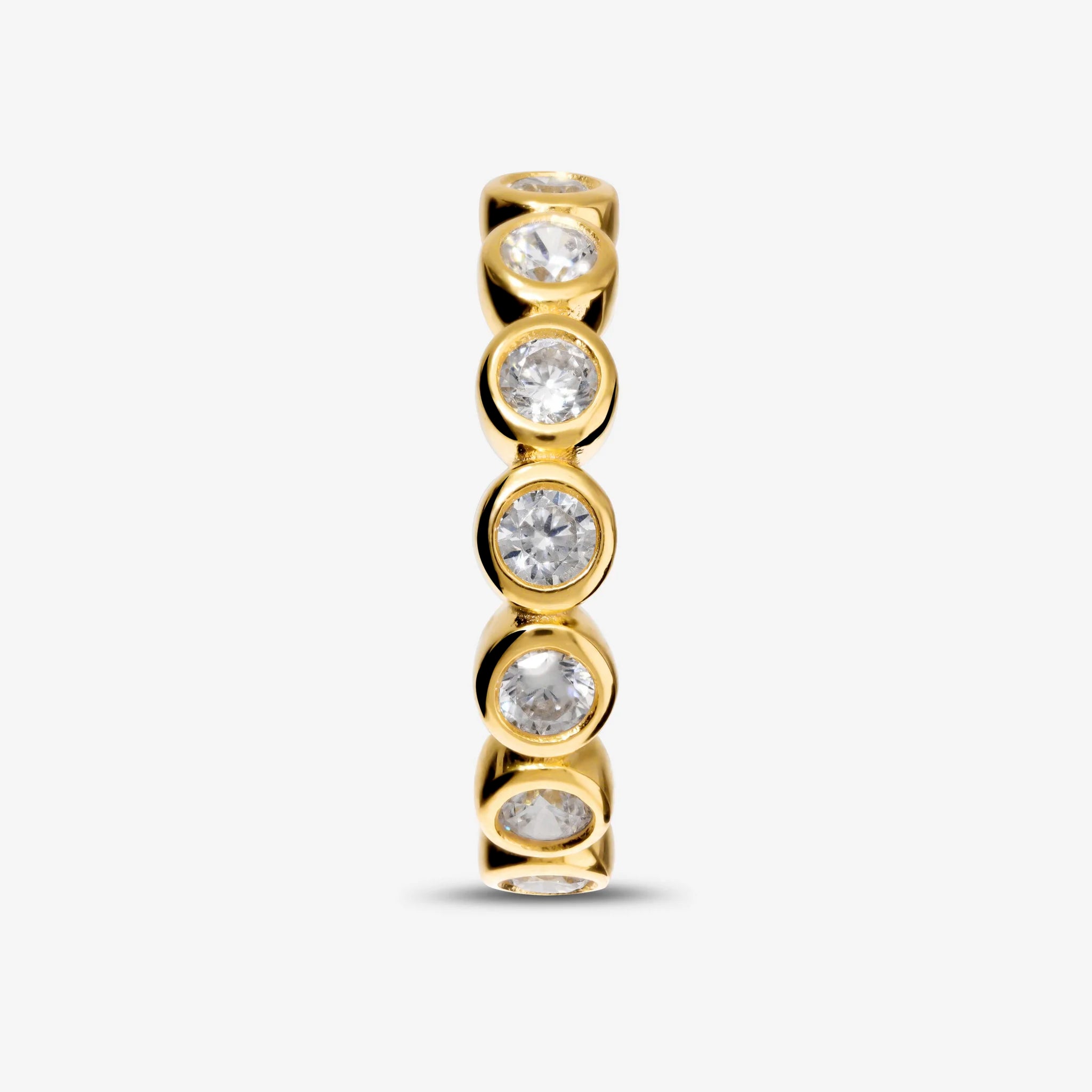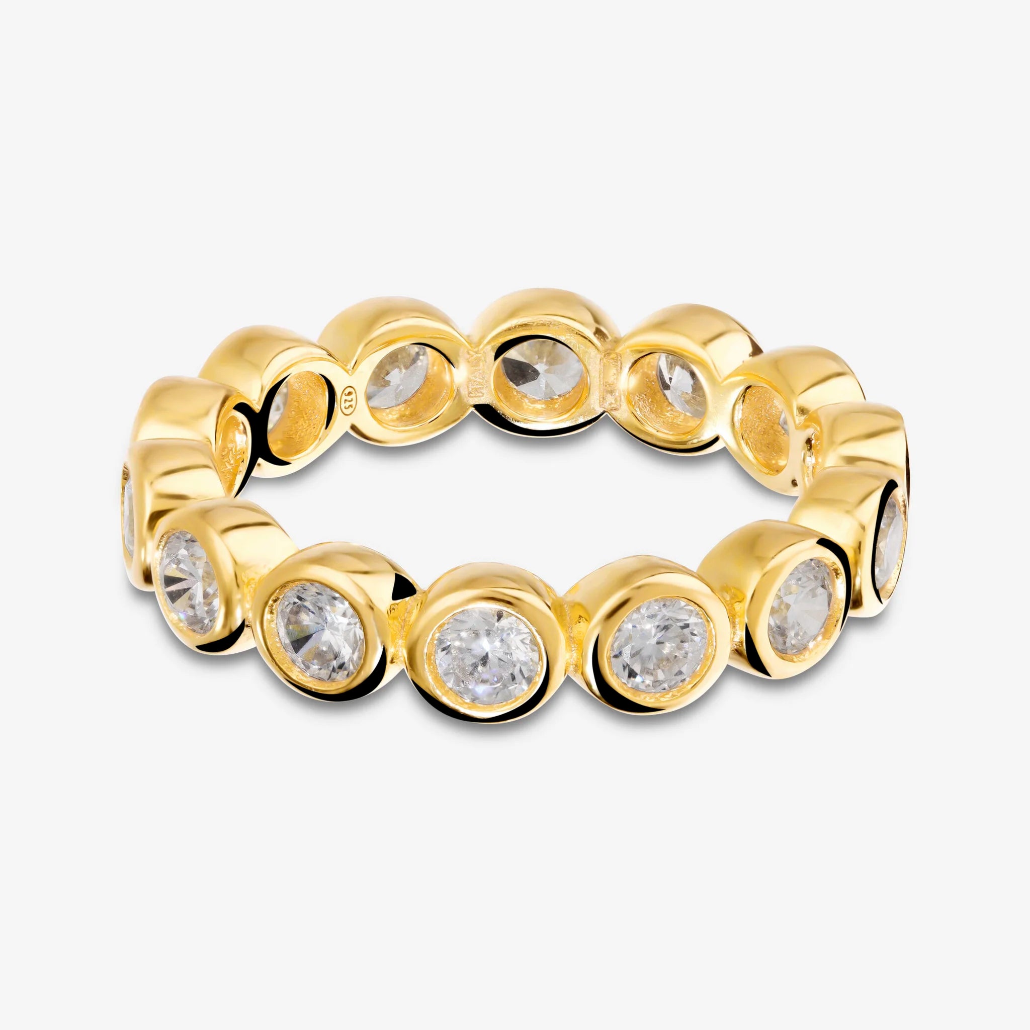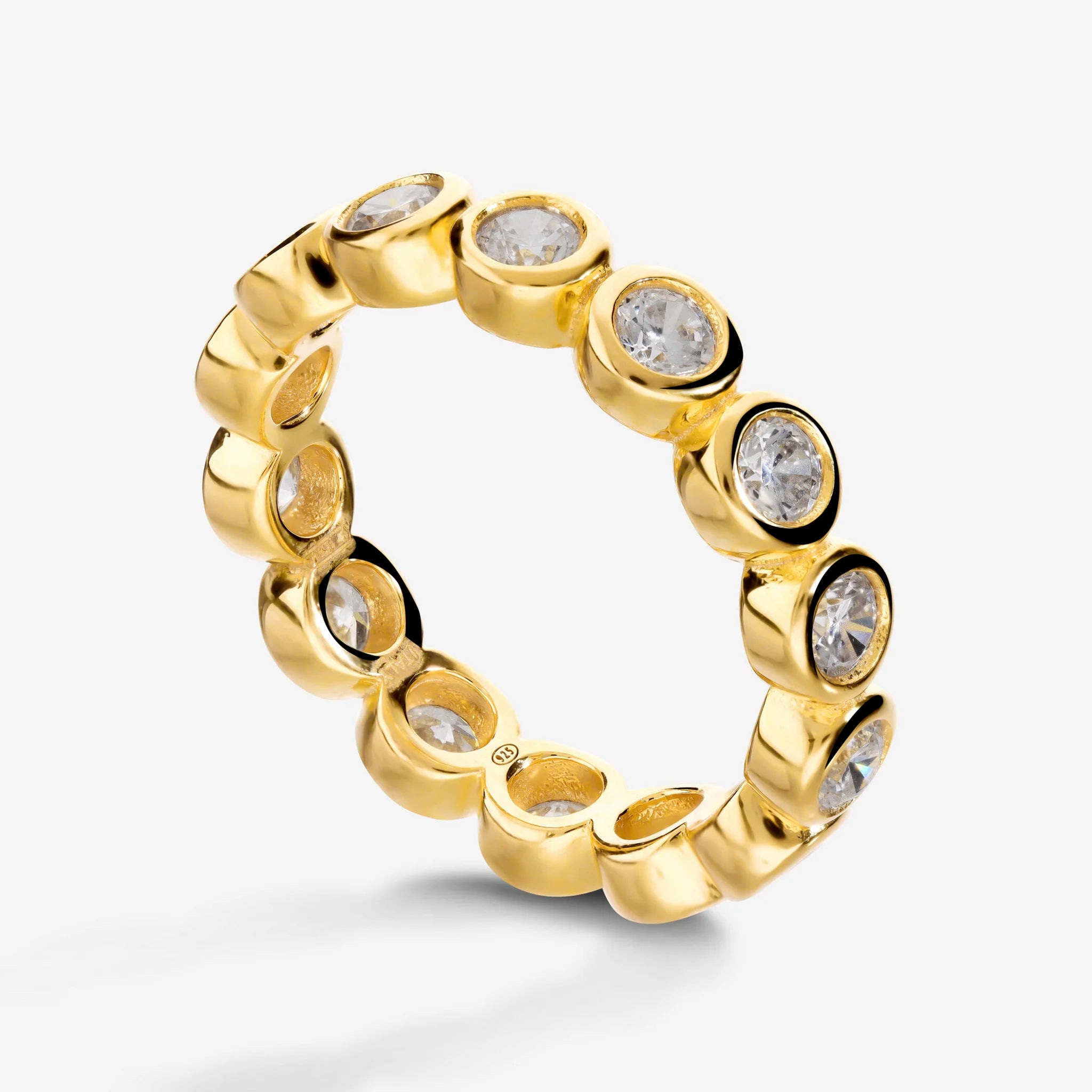 Ring aus 925er Silber, 18 Karat Gelbgold plattiert, veredelt mit funkelnden Zirkonia-Steinen der Qualität "Luminosa" mit insgesamt 3 Karat.