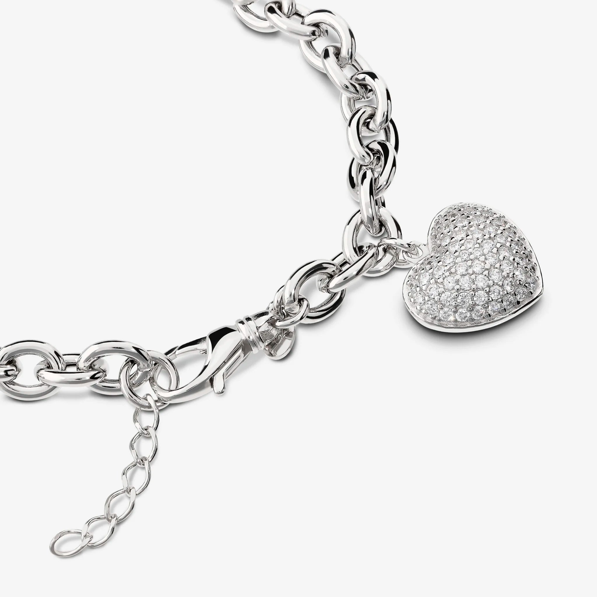 Bracciale Maglia Rolo und Anhänger Herz mit Cubic Zirconia in Silber 925 plattiert mit Platin