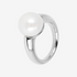 Abgerundeter Solitärring aus 925er Silber, 18 Karat Weißgold vergoldet, verziert mit einer weißen Süßwasser-Knopfzuchtperle mit einem Durchmesser von ca. 12 mm und abgerundeter Form.