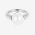 Gewölbter Solitärring mit weißer Süßwasser-Knopfperle Ø 12 mm aus 18 Karat Weißgold vergoldetem 925er Silber