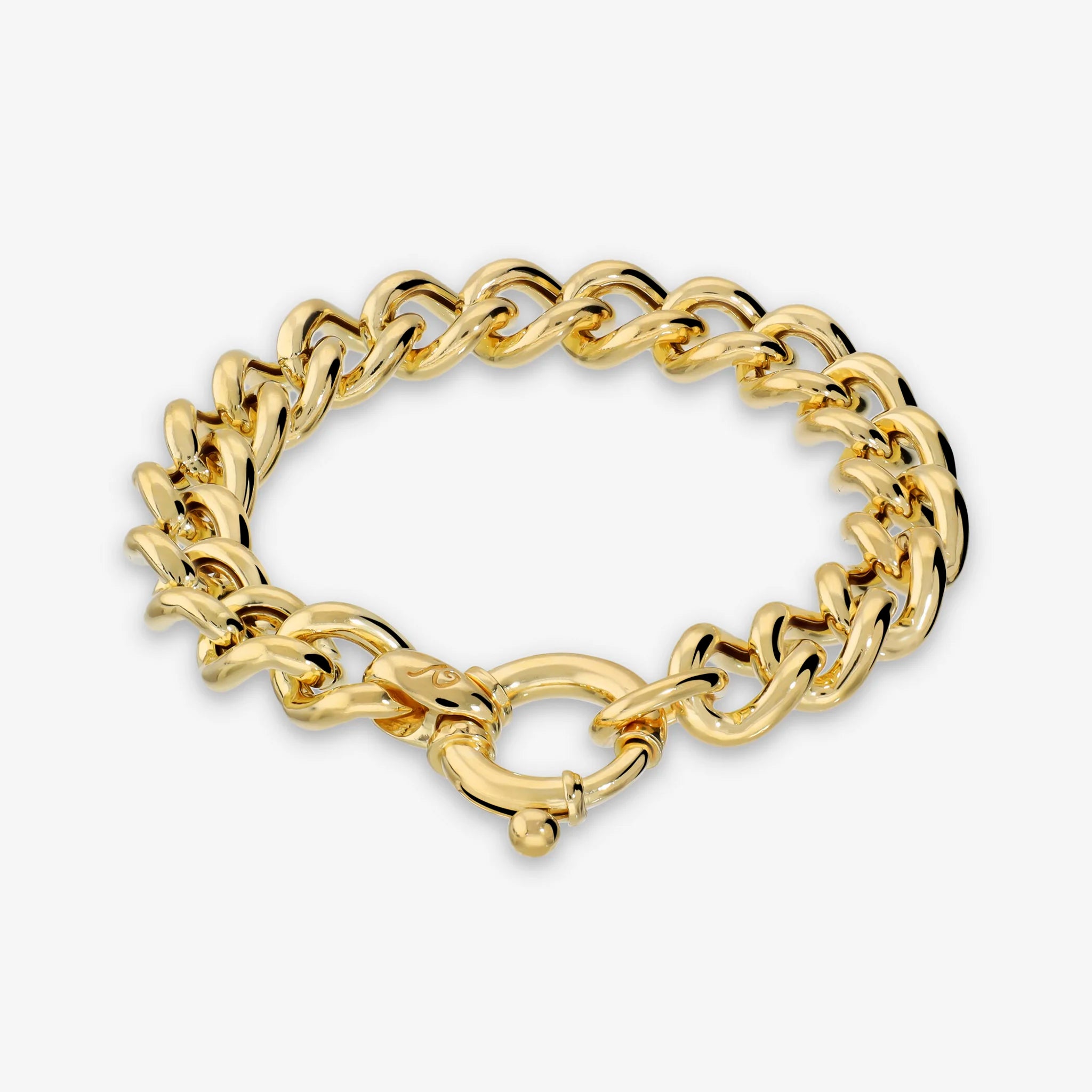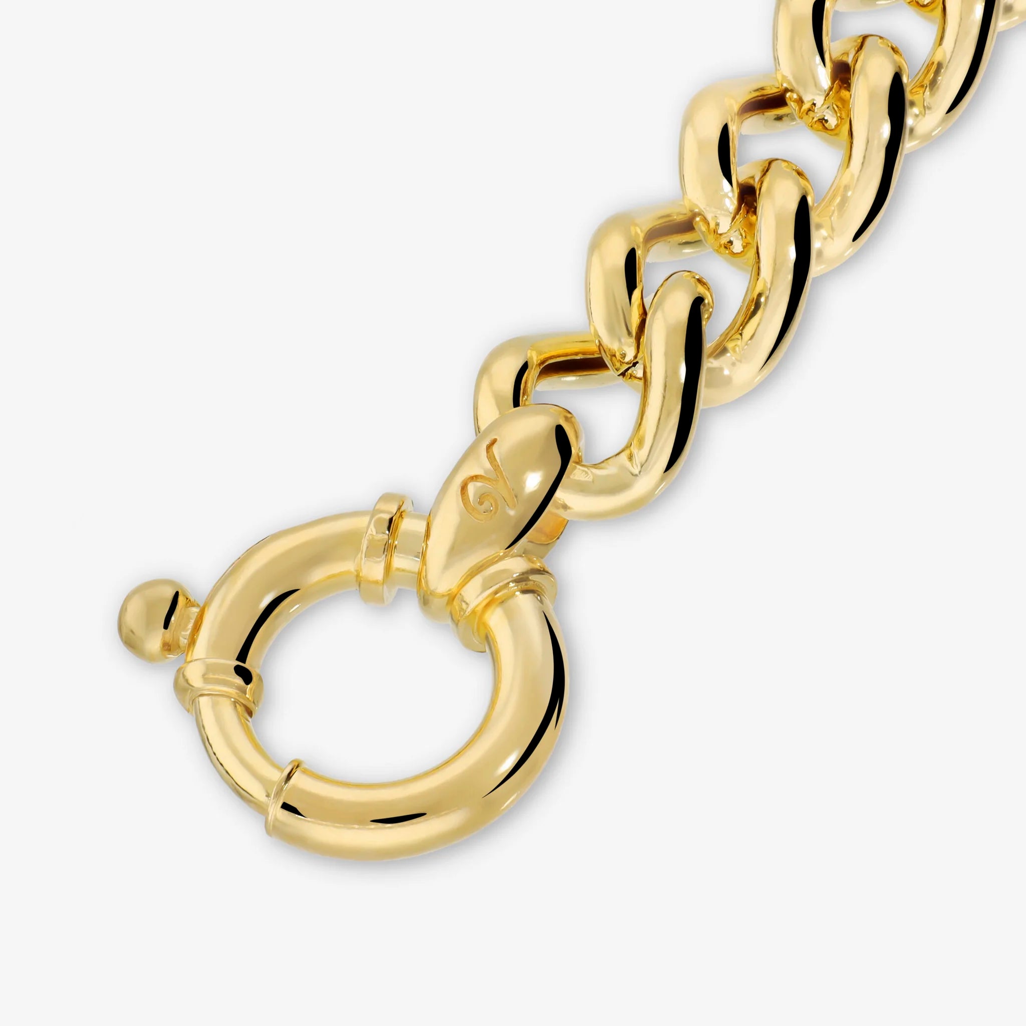 Panzergliederarmband aus 18-Karat-Gelbgold plattiertem 925er-Silber. Glänzendes Finish. Länge 20,5 cm. Runder Karabinerverschluss.