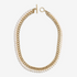 Choker necklace in 925 Silver, 18kt yellow gold plated, with lump link and string of white circled freshwater cultured pearls with a diameter of approximately 7/8 mm. Length 45.5 cm. 'T-bar' closure.