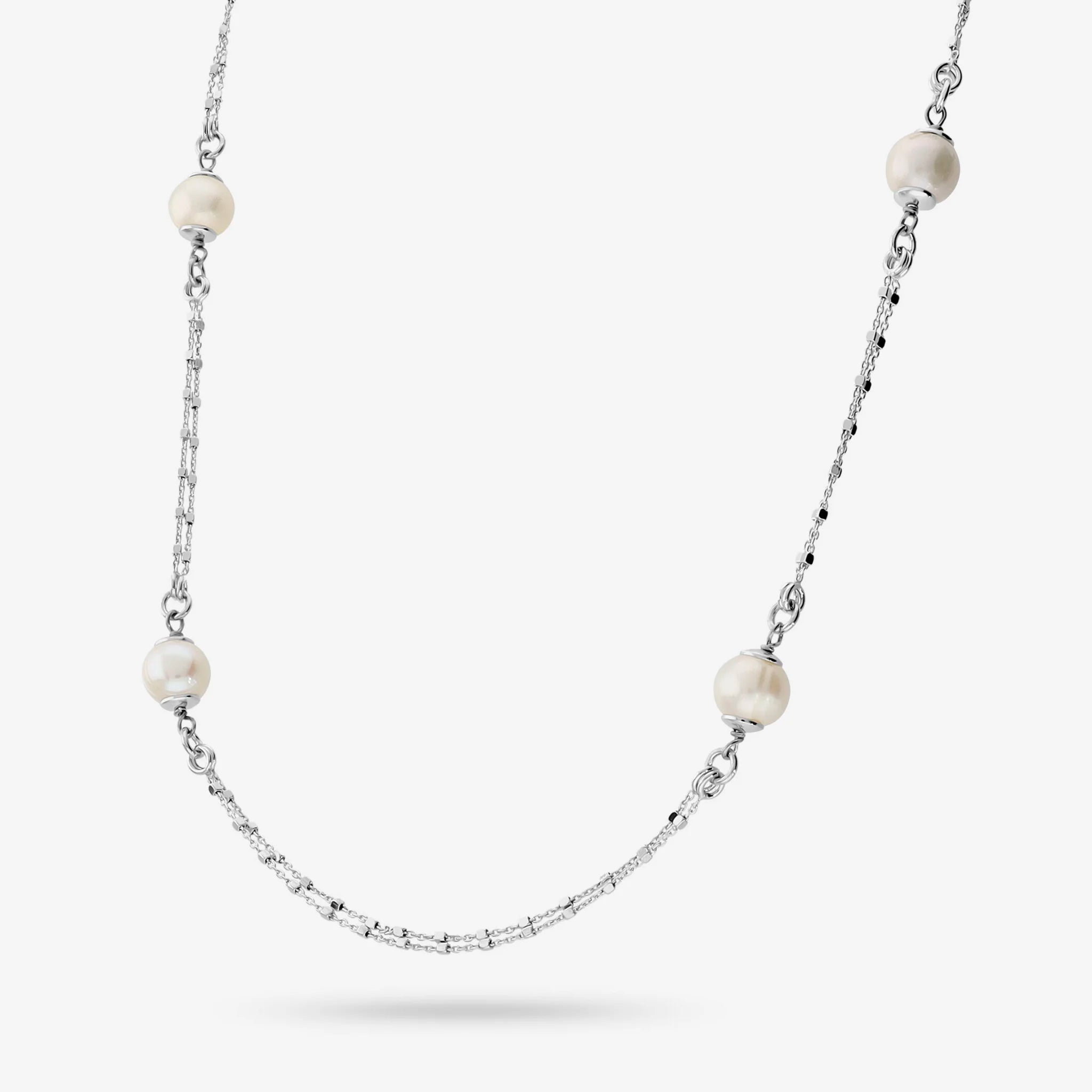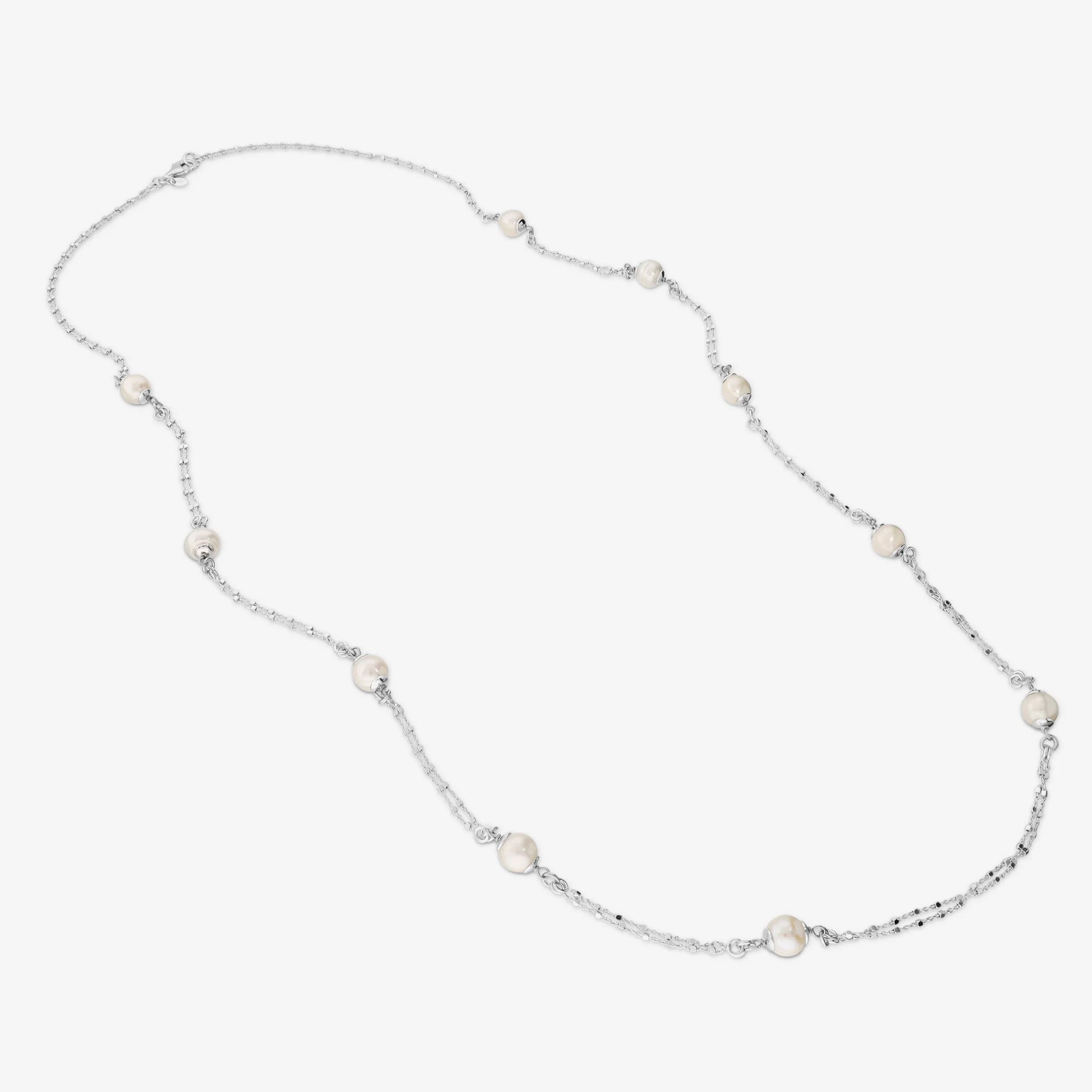 Collana Lunga in Argento 925 placcato Oro Bianco 18Kt con Perle d'Acqua Dolce Bianche Ø 9/10 mm