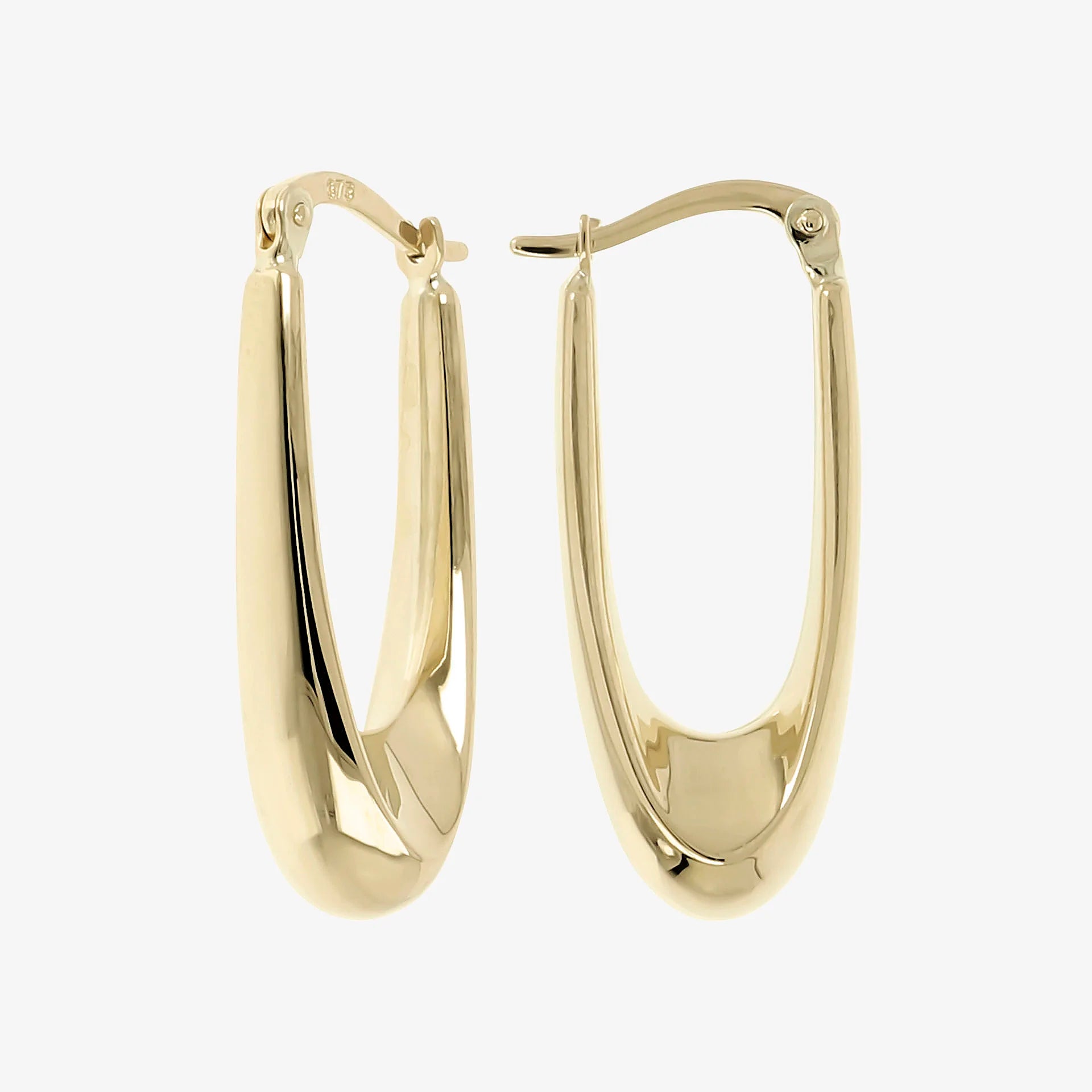 The elongated pendant earrings in 9 carat yellow gold are rounded, graphic and essential; length of 2.5cm. Like all Milor jewels, they are designed to be worn every day like a second skin.