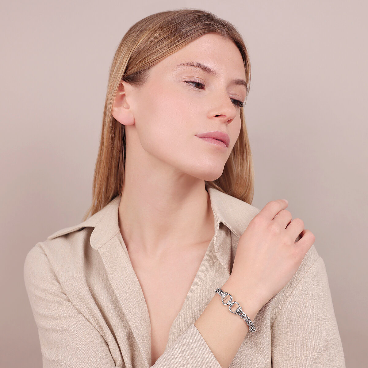 Byzantine Link Bracelet with Horseshoe in 925 Silver Plated with Platinum