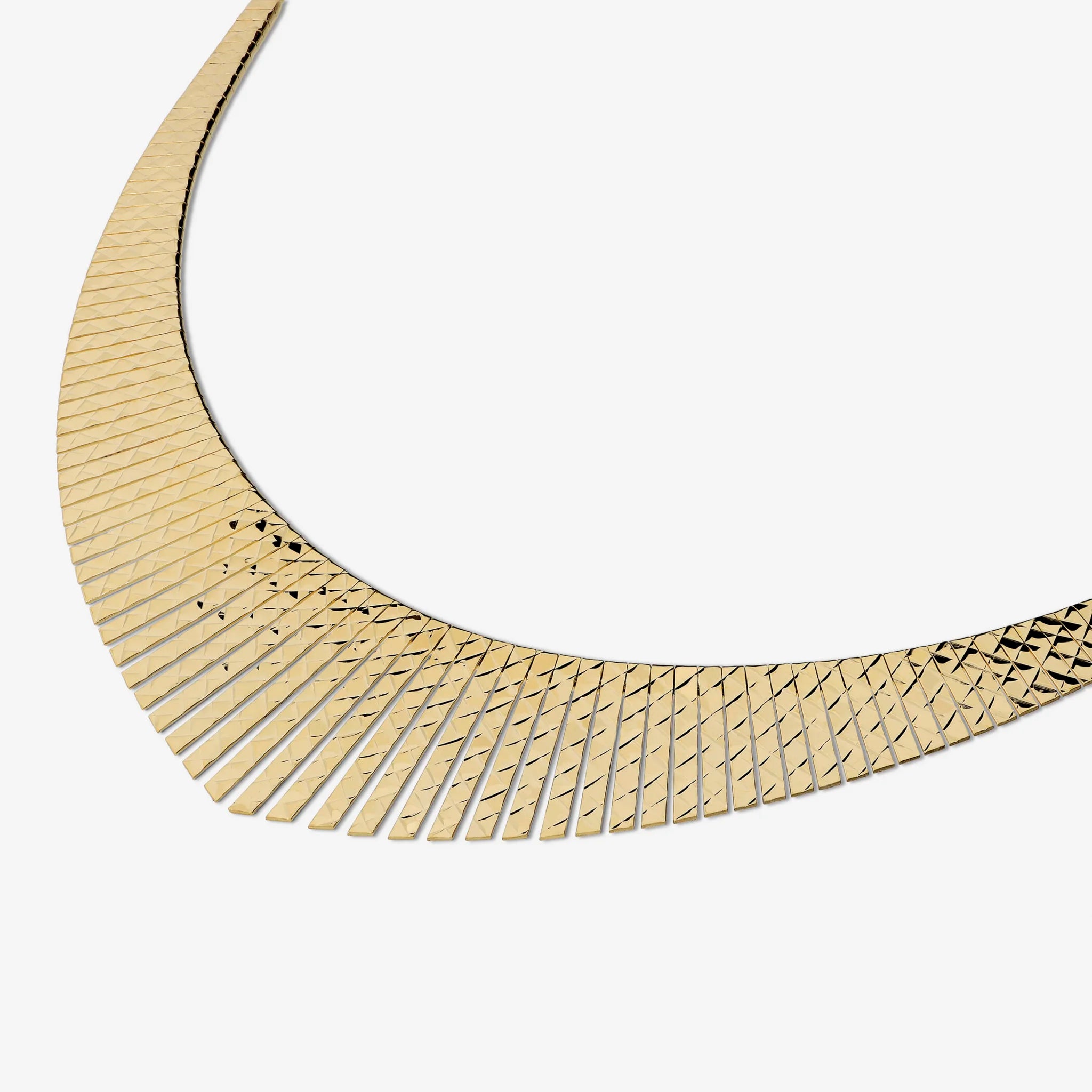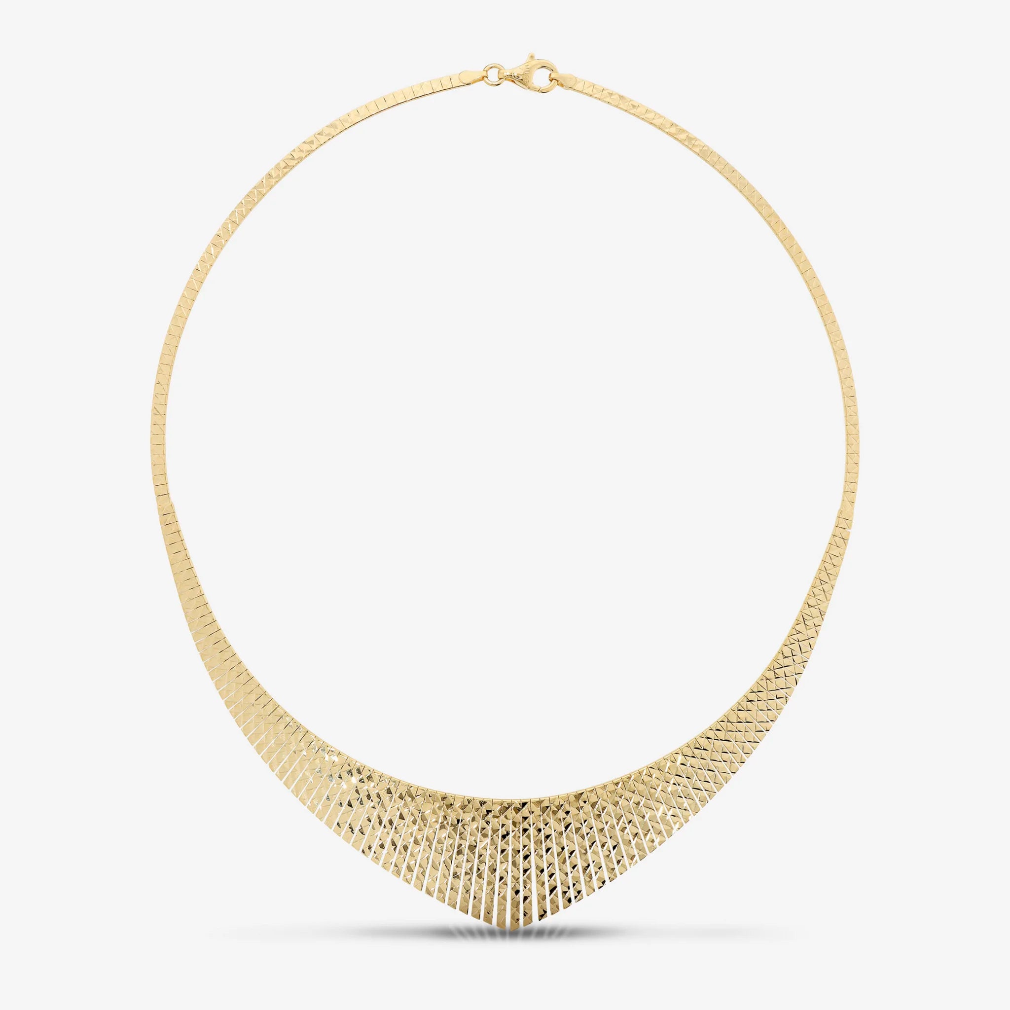 "V" shaped choker necklace in 925 Silver plated with 18kt yellow Gold with a diamond-cut surface. Length 46 cm. Lobster clasp.