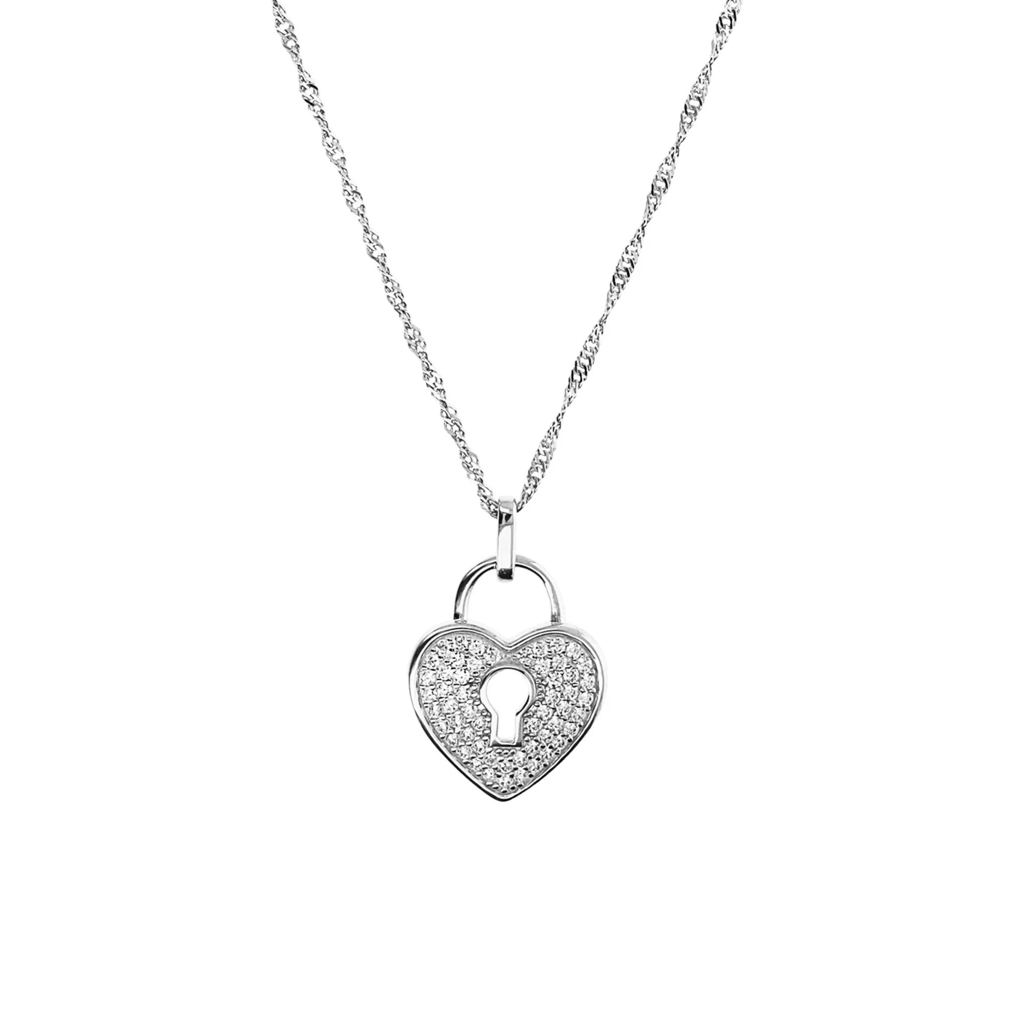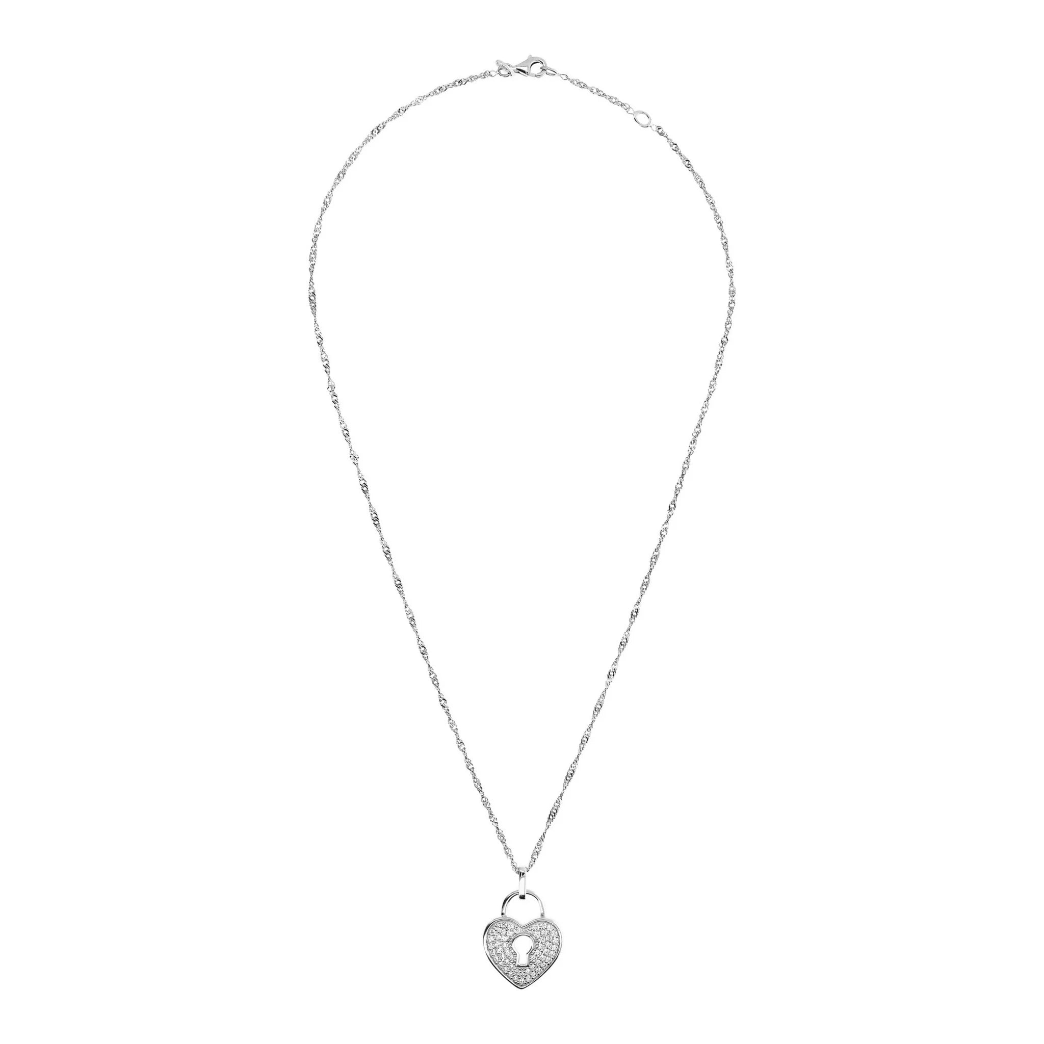 Diamond-cut Singapore choker necklace in Rhodium-plated 925 Silver. Removable heart/padlock pendant with cubic zirconia pavé, equal to 0.77kt. Lobster clasp closure and length of 46cm, adjustable from 1 interposed ring to 43cm.