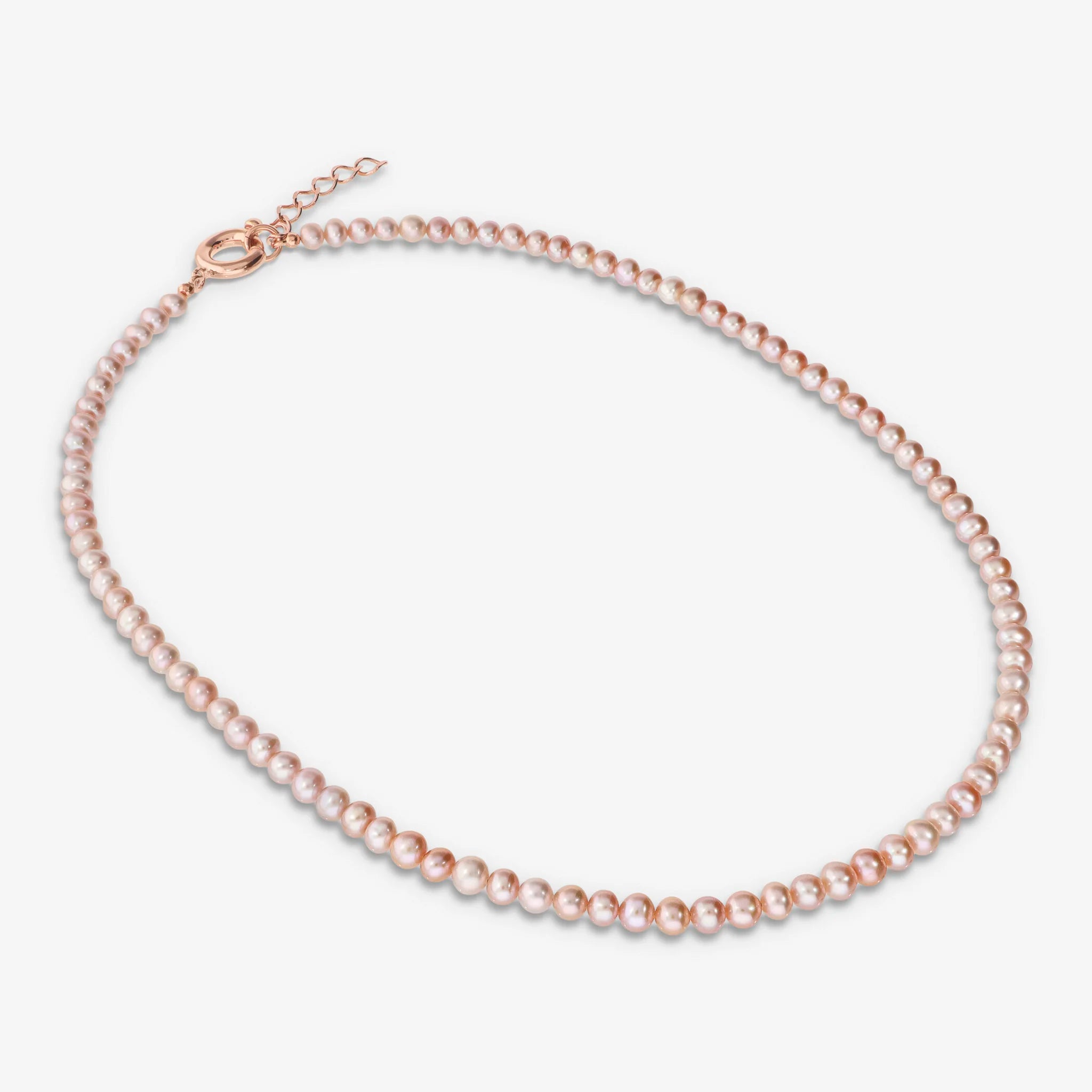 Necklace Choker in 925 Silver plated with 18Kt Rose Gold with Multicolor Freshwater Pearls Ø 4.5 mm