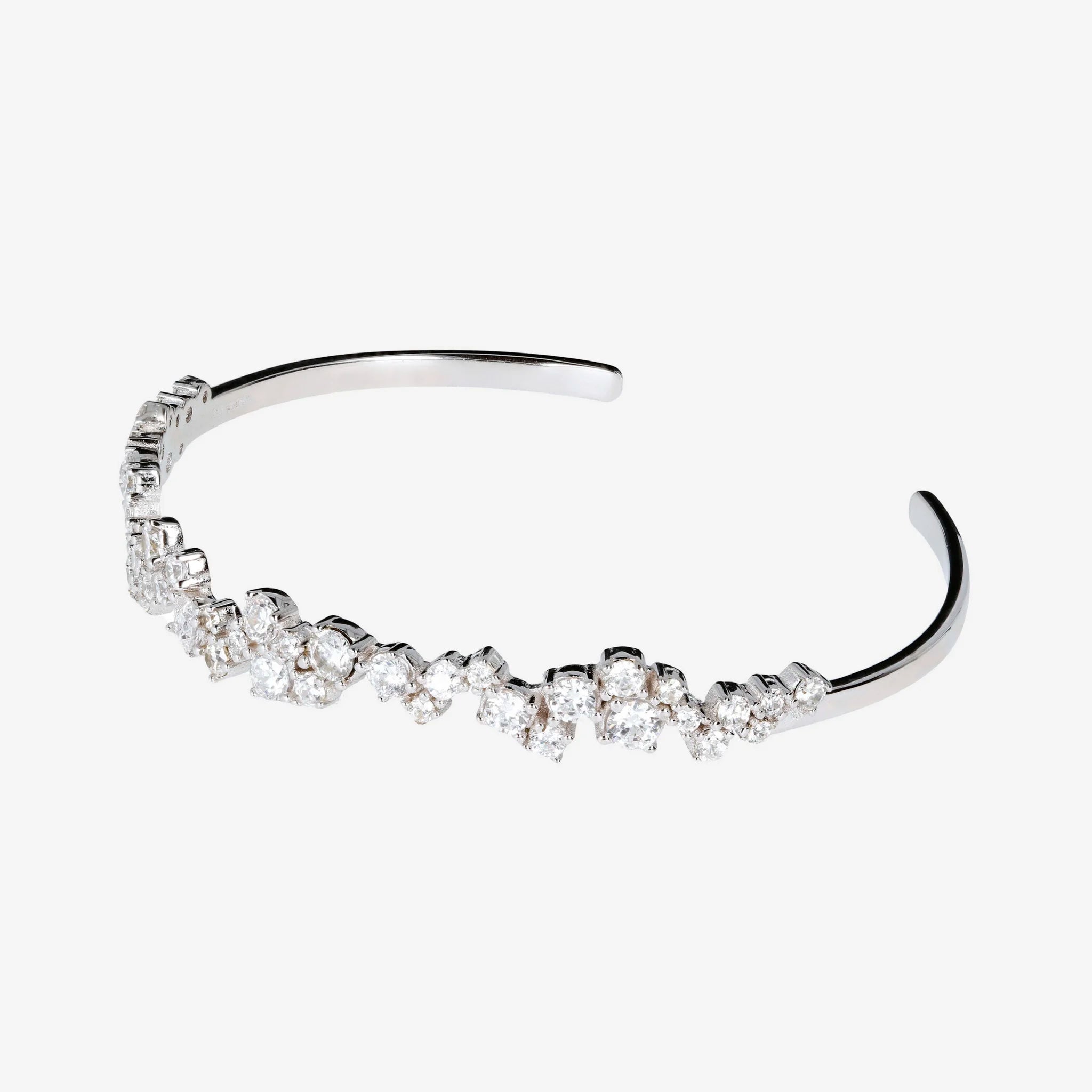 Rigid bracelet in Rhodium plated 925 Silver with a cascade of cubic zirconia, 'Luminous' quality, equal to 1.72kt. 'Tiara' design.