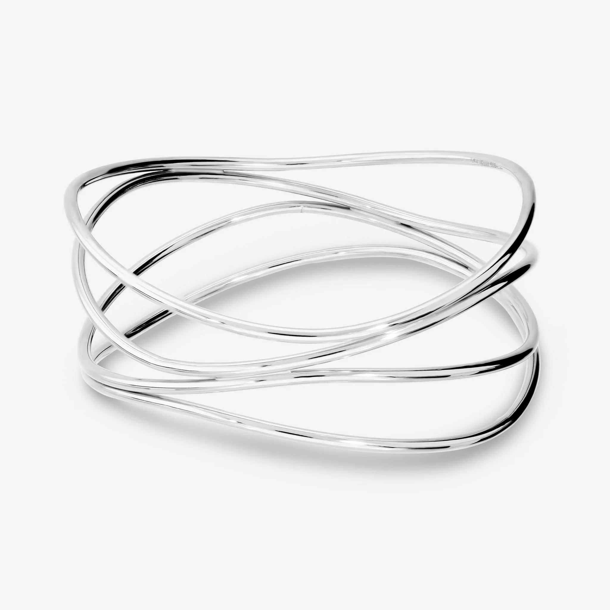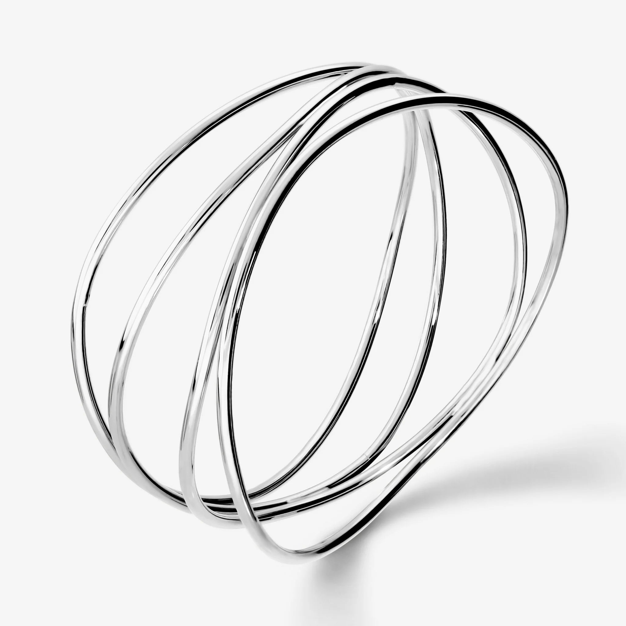 Rigid bracelet in 925 Silver, platinum plated, with a multi-strand design. Glossy finish. Available in three sizes: Small (internal diameter 65mm) / Medium (internal diameter 68mm) / Large (internal diameter 70mm).