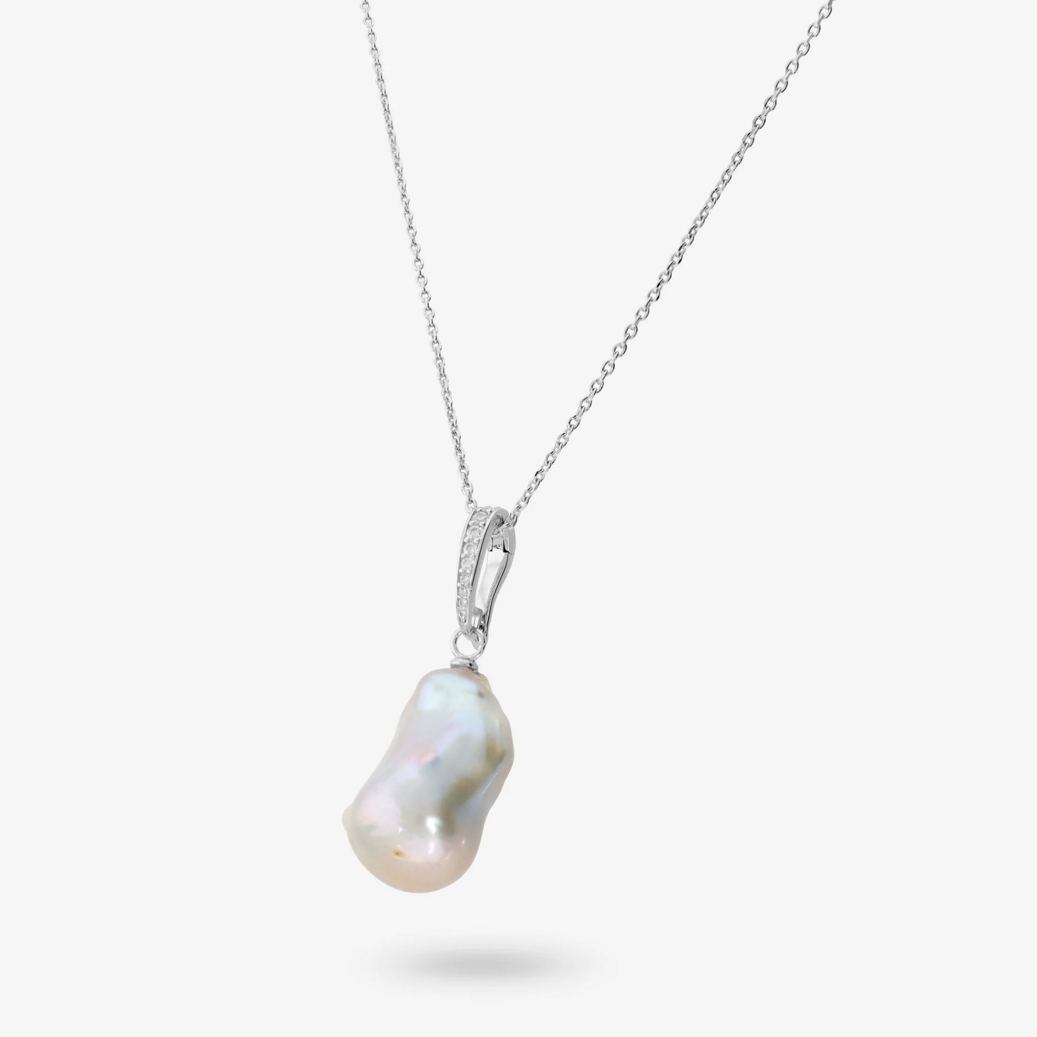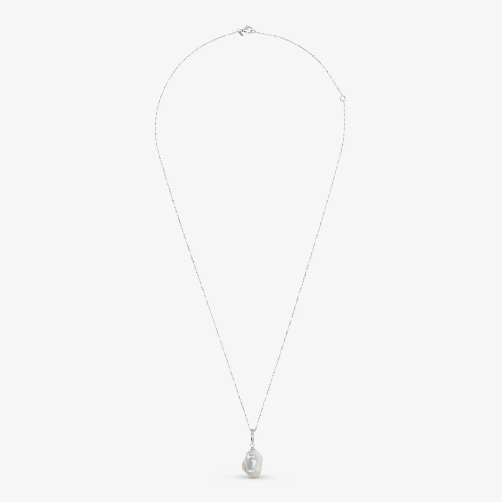 Diamond Mesh Necklace in 925 Silver plated with 18Kt White Gold with Cubic Zirconia and Freshwater Scaramazza Pearl