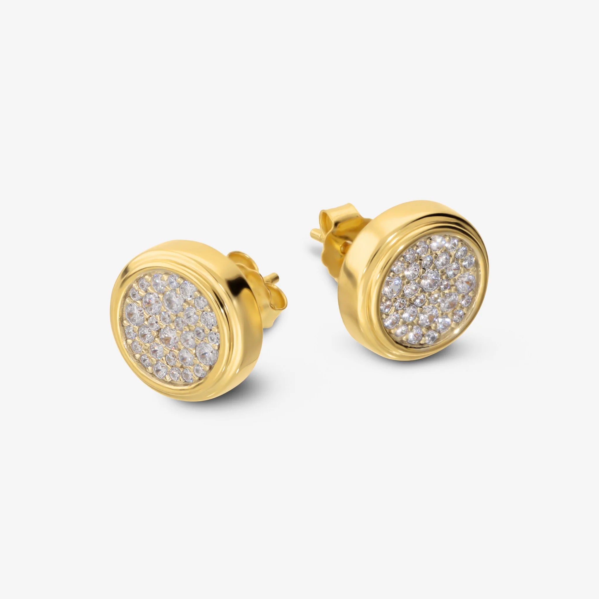 Button Earrings in 925 Silver plated with 18Kt Yellow Gold with Pavé of Cubic Zirconia