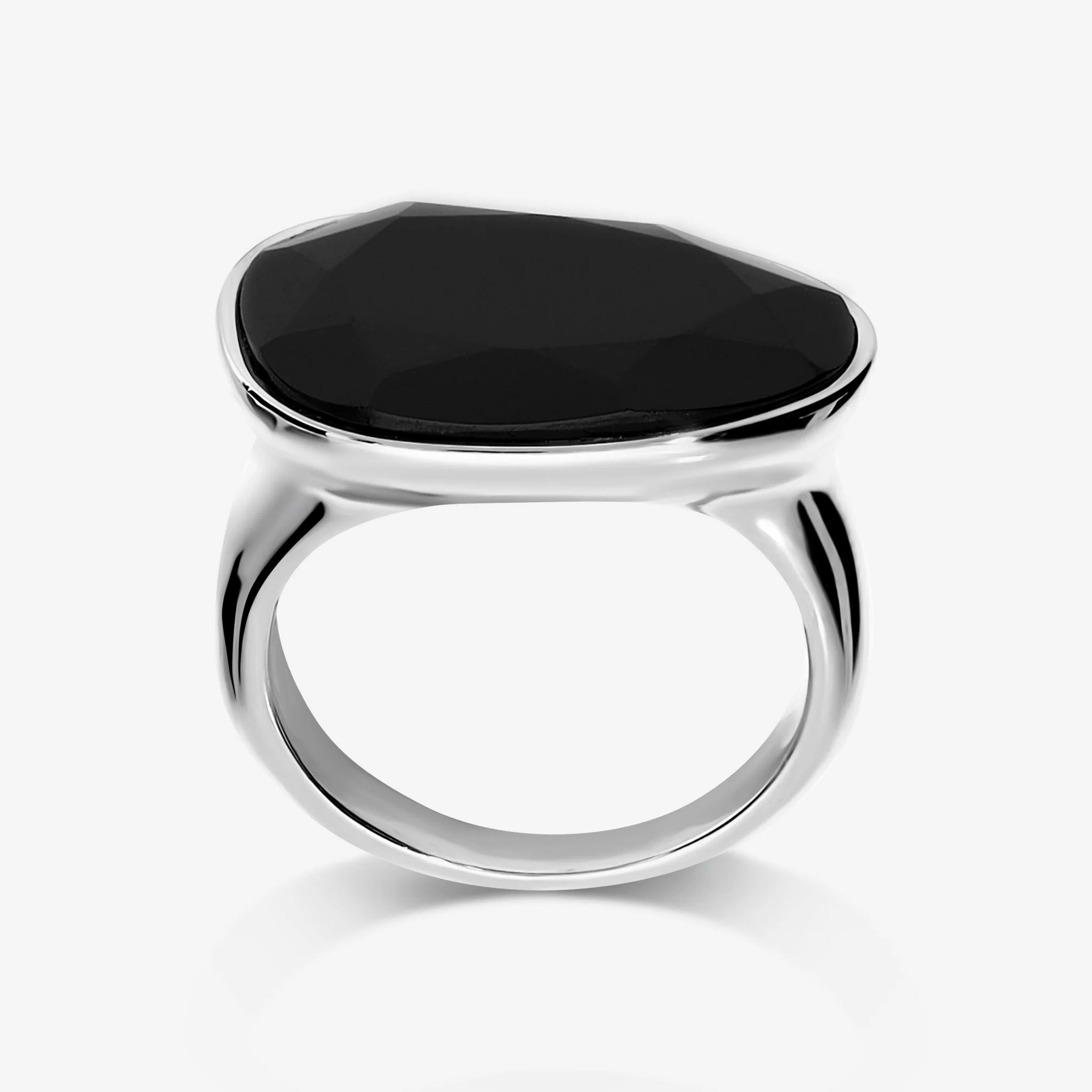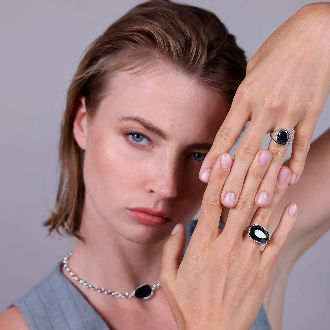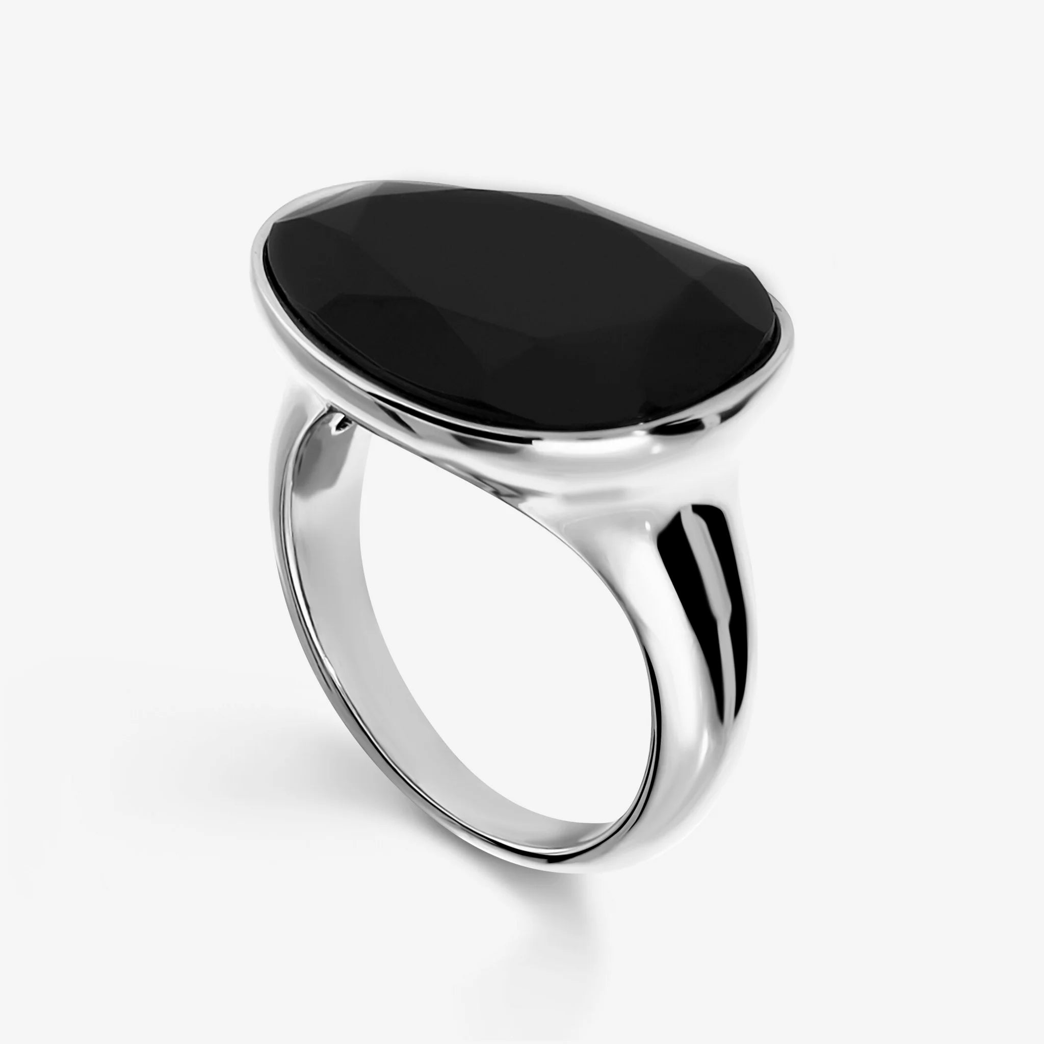 925 silver chevalier ring with faceted black spinel natural stone with an oval shape, perfect to wear at any time of day.