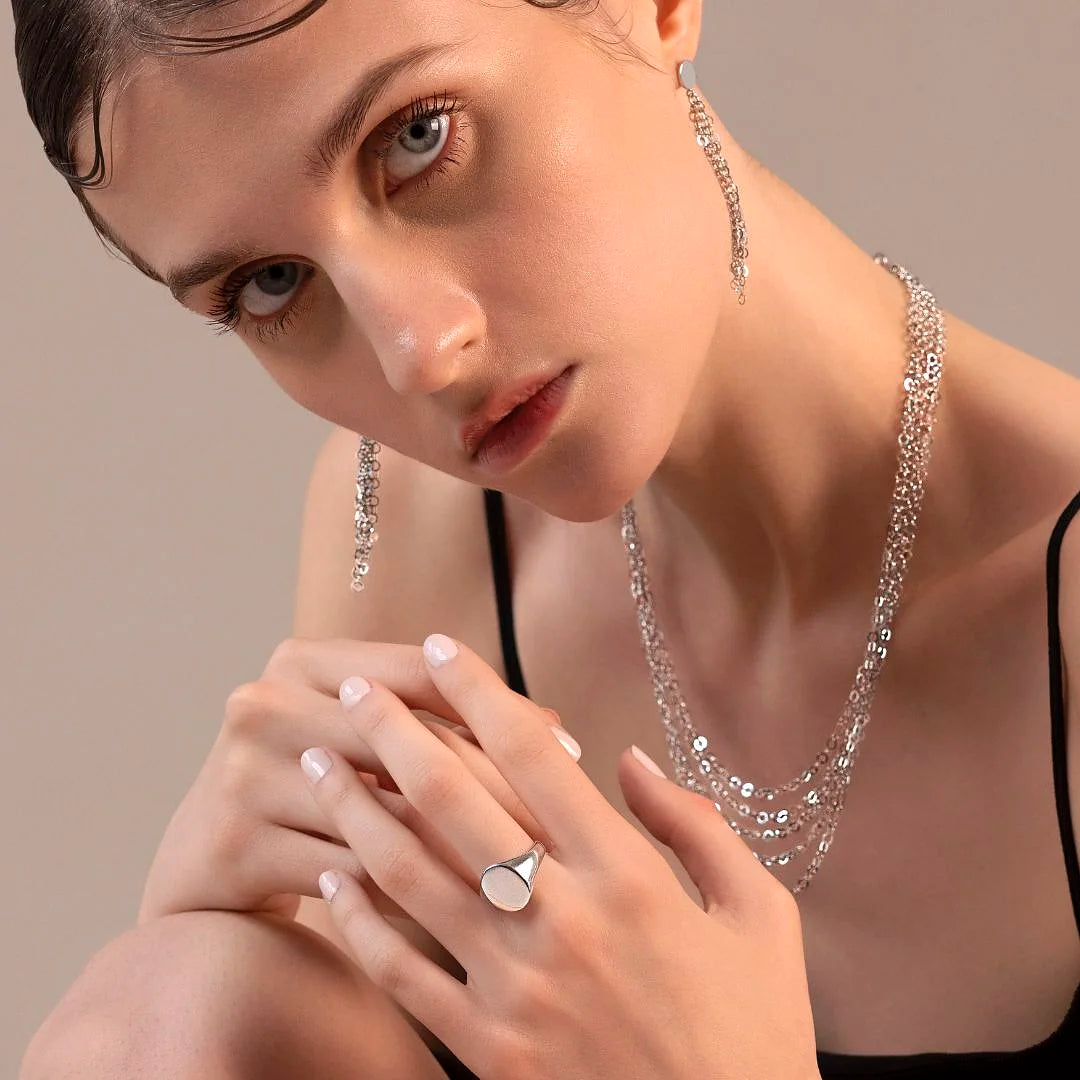Oval-shaped chevalier ring in 925 silver, perfect to wear at any time of day.