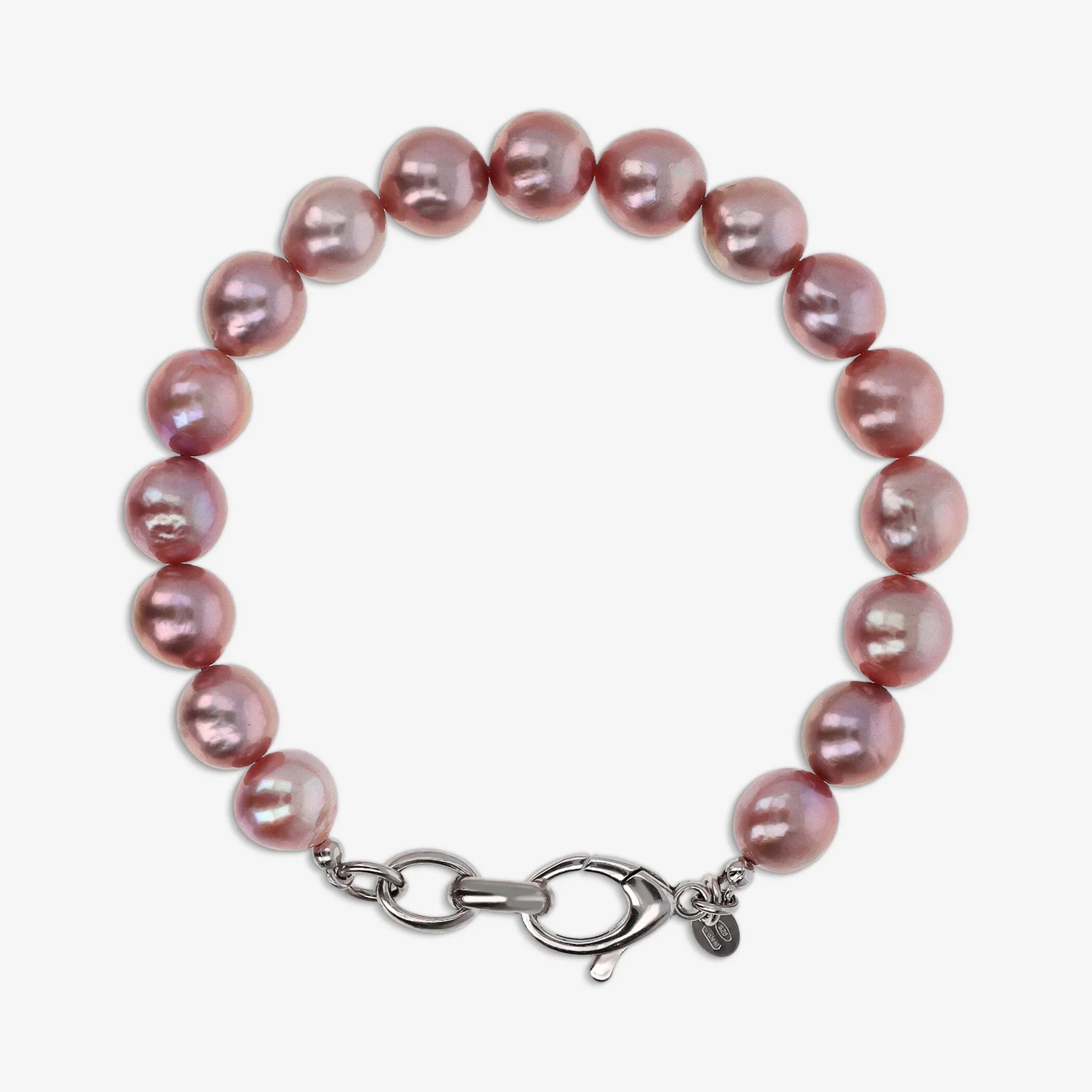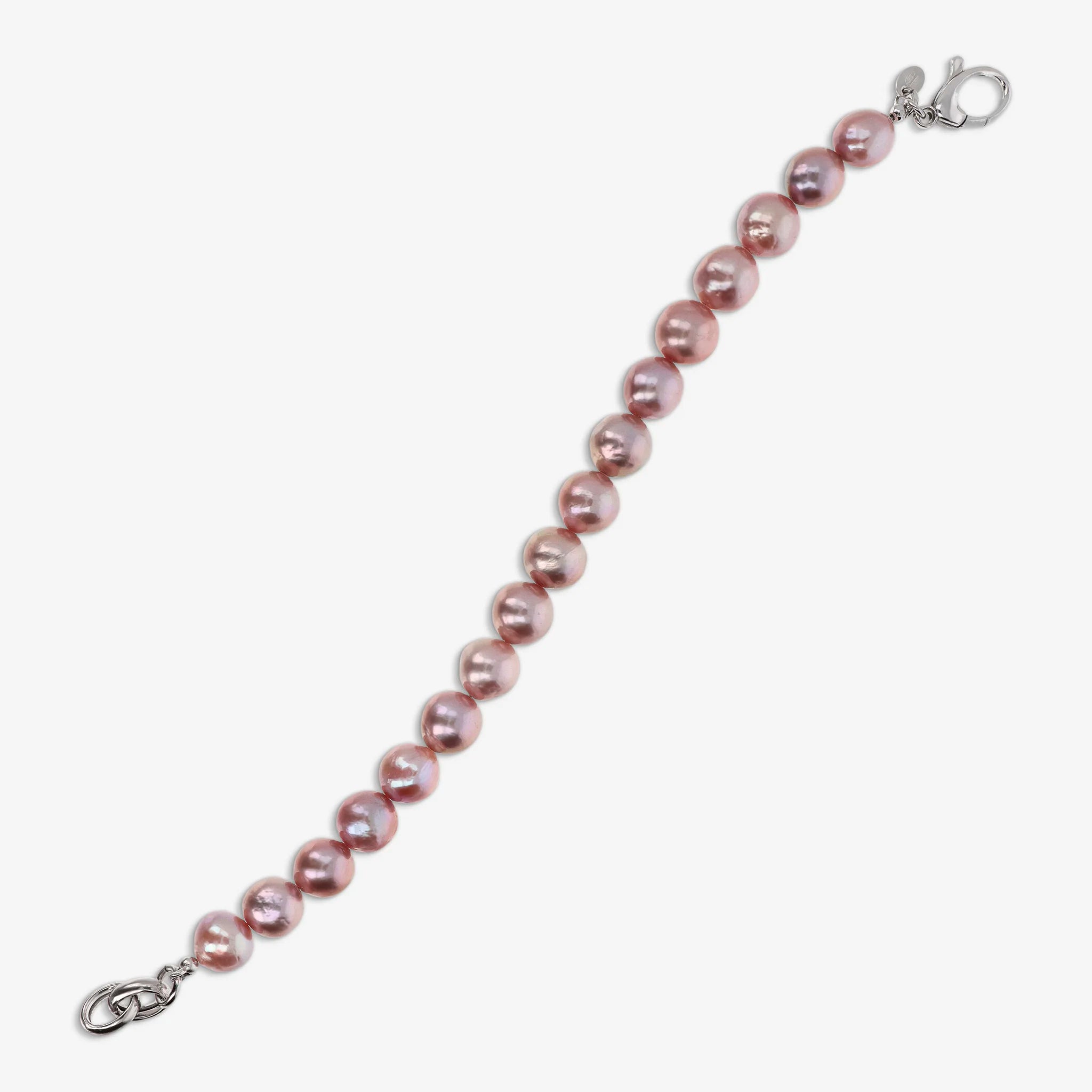 Bracelet in 925 silver, 18kt white gold plated, with multicolored iridescent freshwater Ming pearls with a diameter of approximately 9/10 mm and a rounded shape. Length 19.5 cm. Lobster clasp closure.