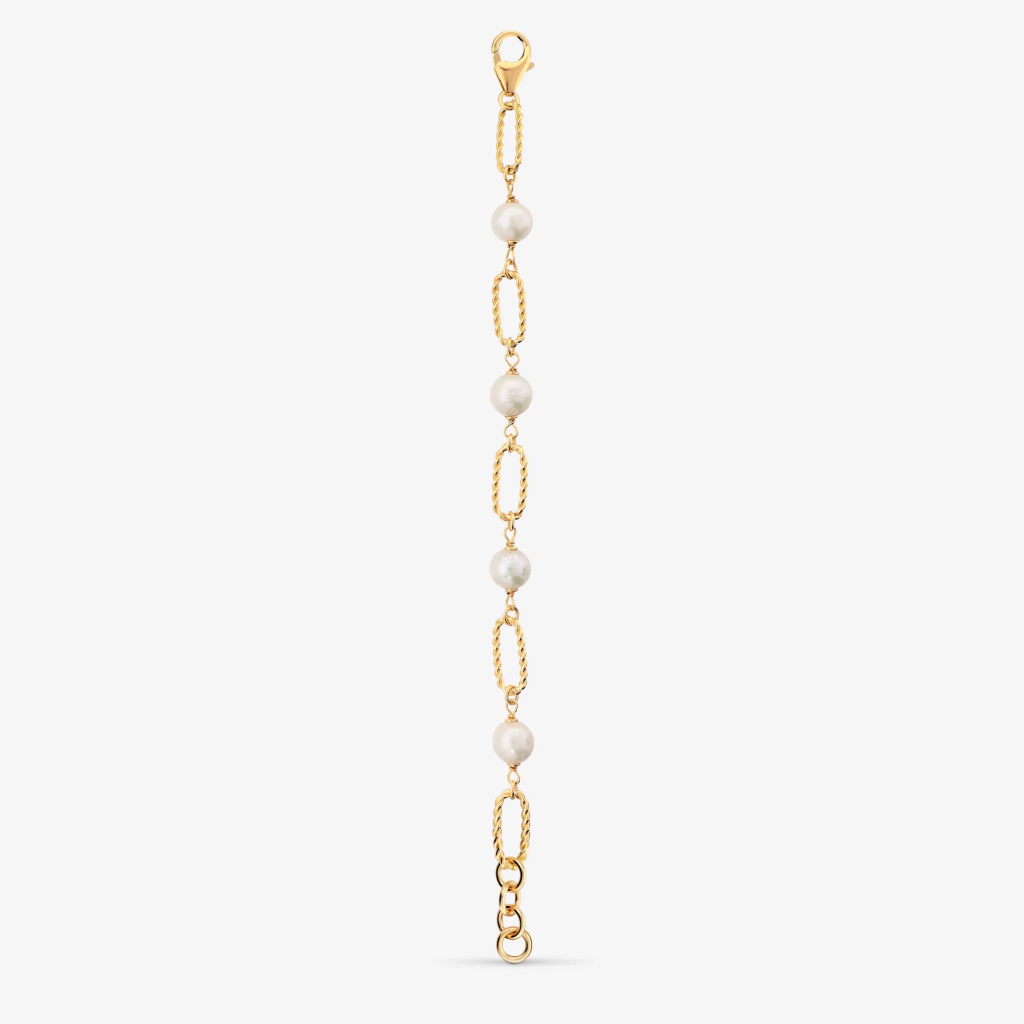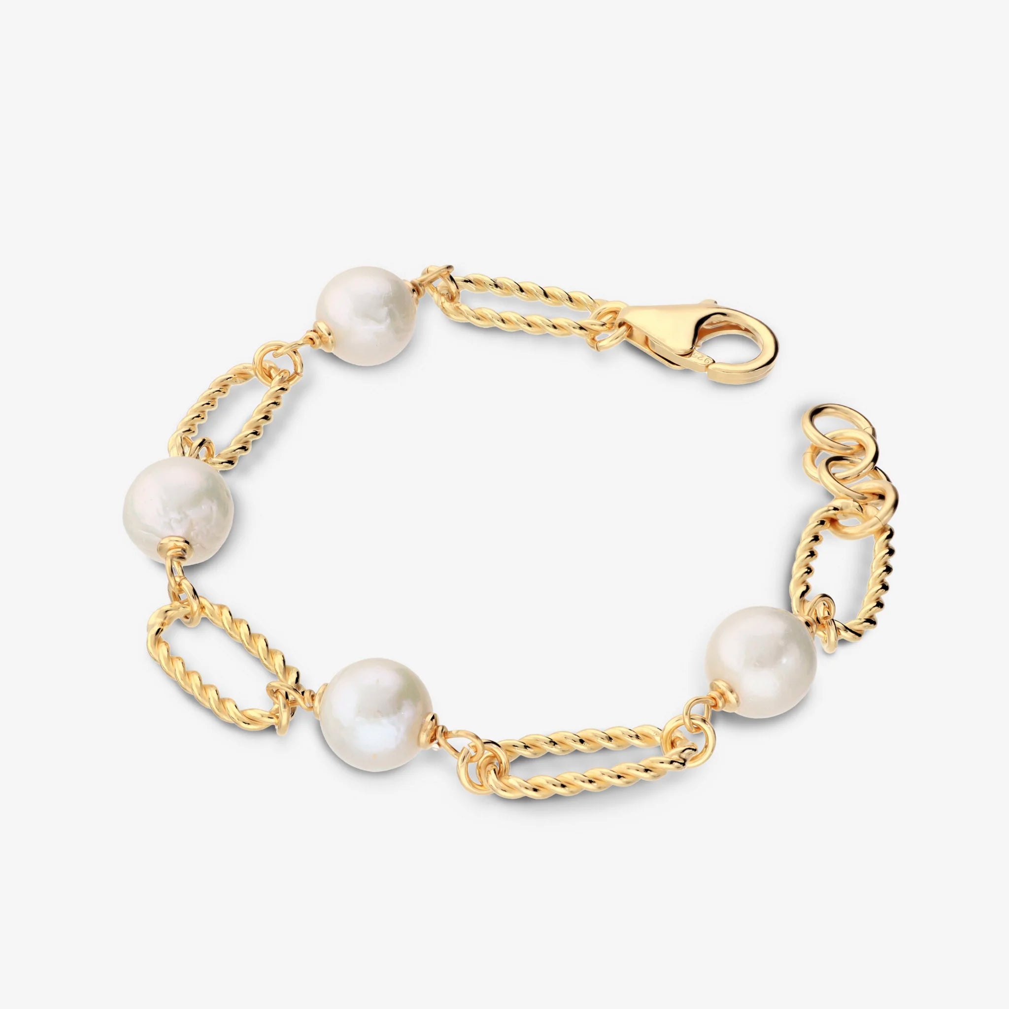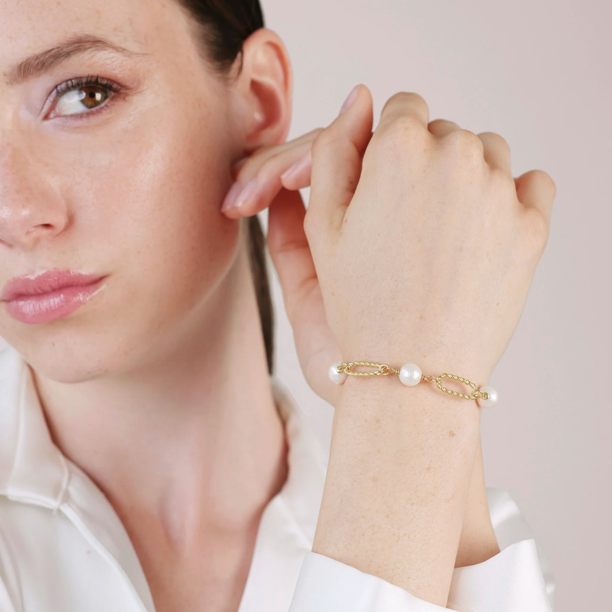 Bracelet in 925 Silver plated with 18Kt Yellow Gold with Twisted Links and White Ming Freshwater Pearls Ø 8/9 mm