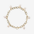 750/1000 gold bracelet with oval rolo link embellished with seven round white Akoya pearls with a diameter of approximately 8/9 mm. Length 20cm. Lobster clasp closure.