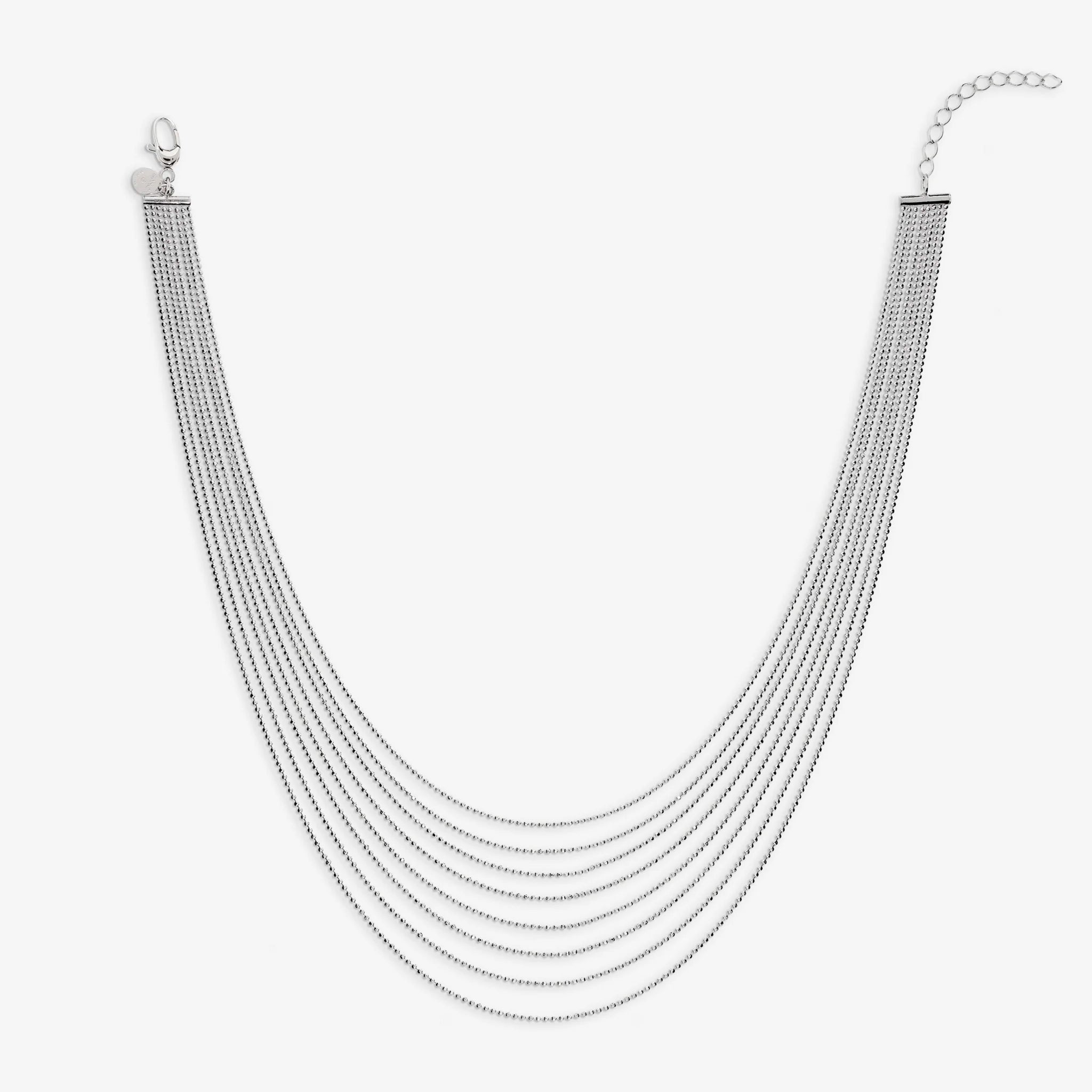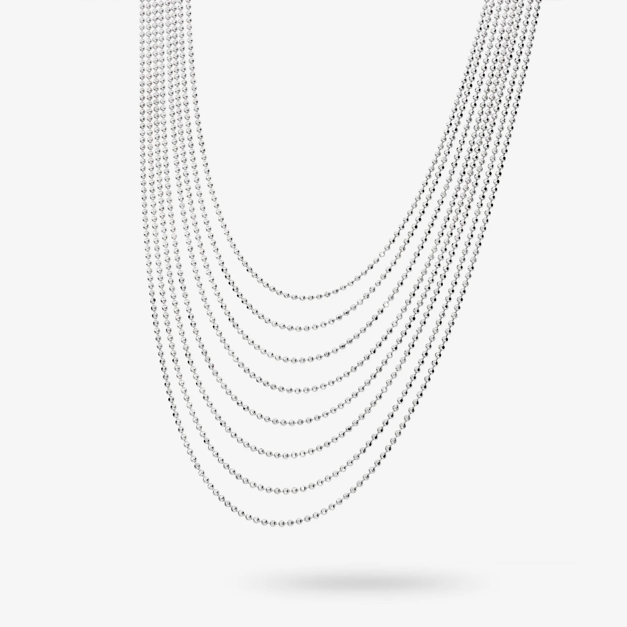Multi-strand Graduated Necklace with Diamond Microbeads in 925 Platinum Plated Sterling Silver