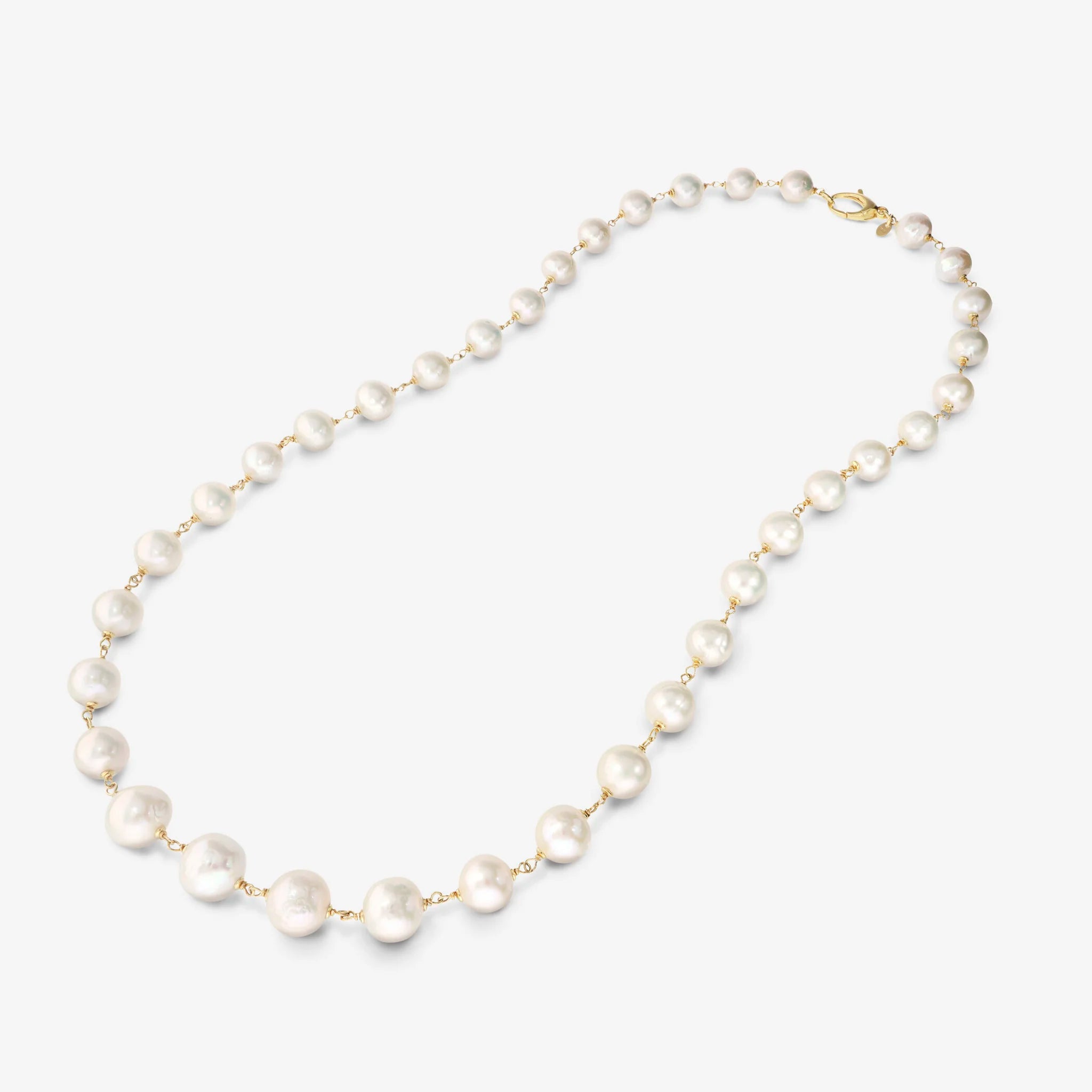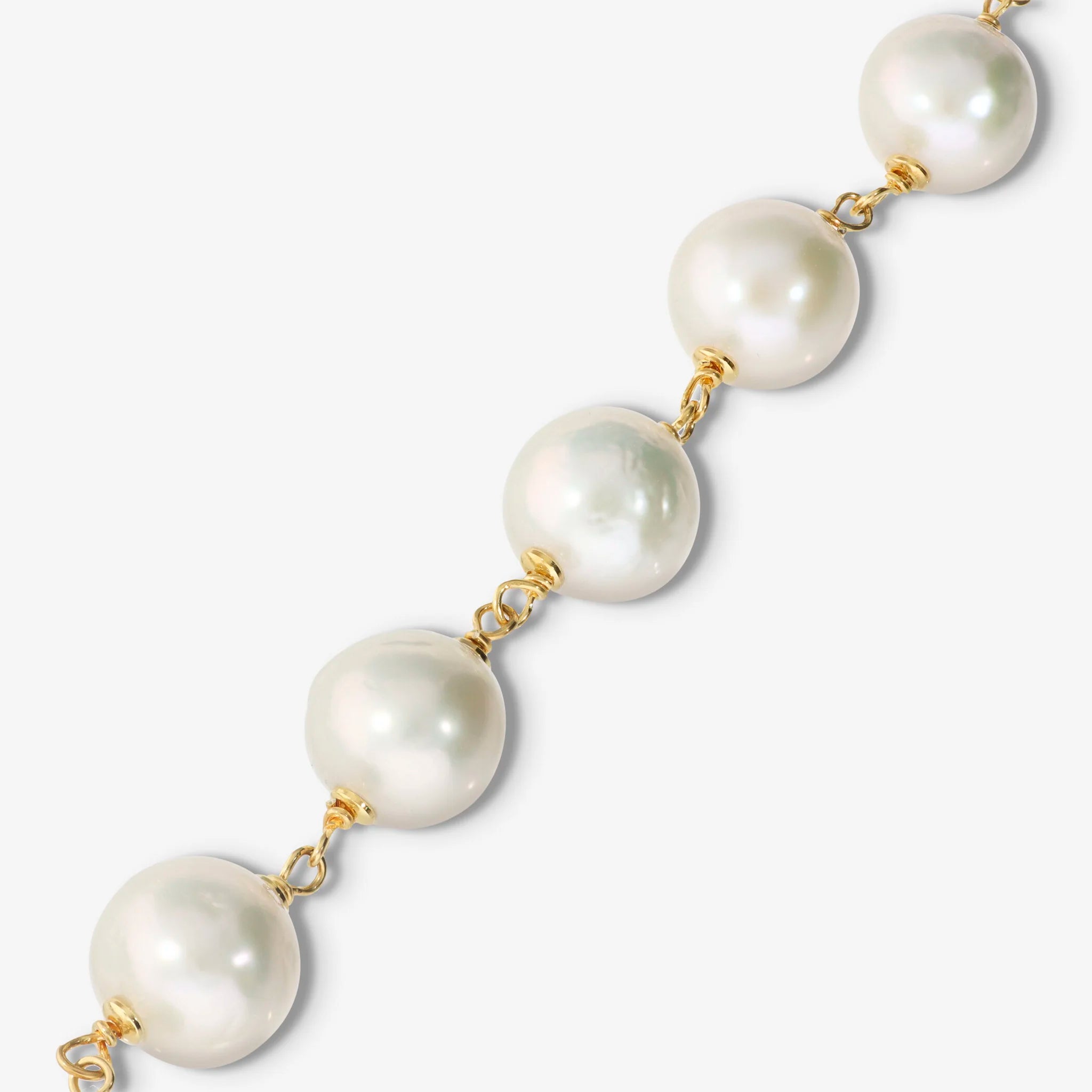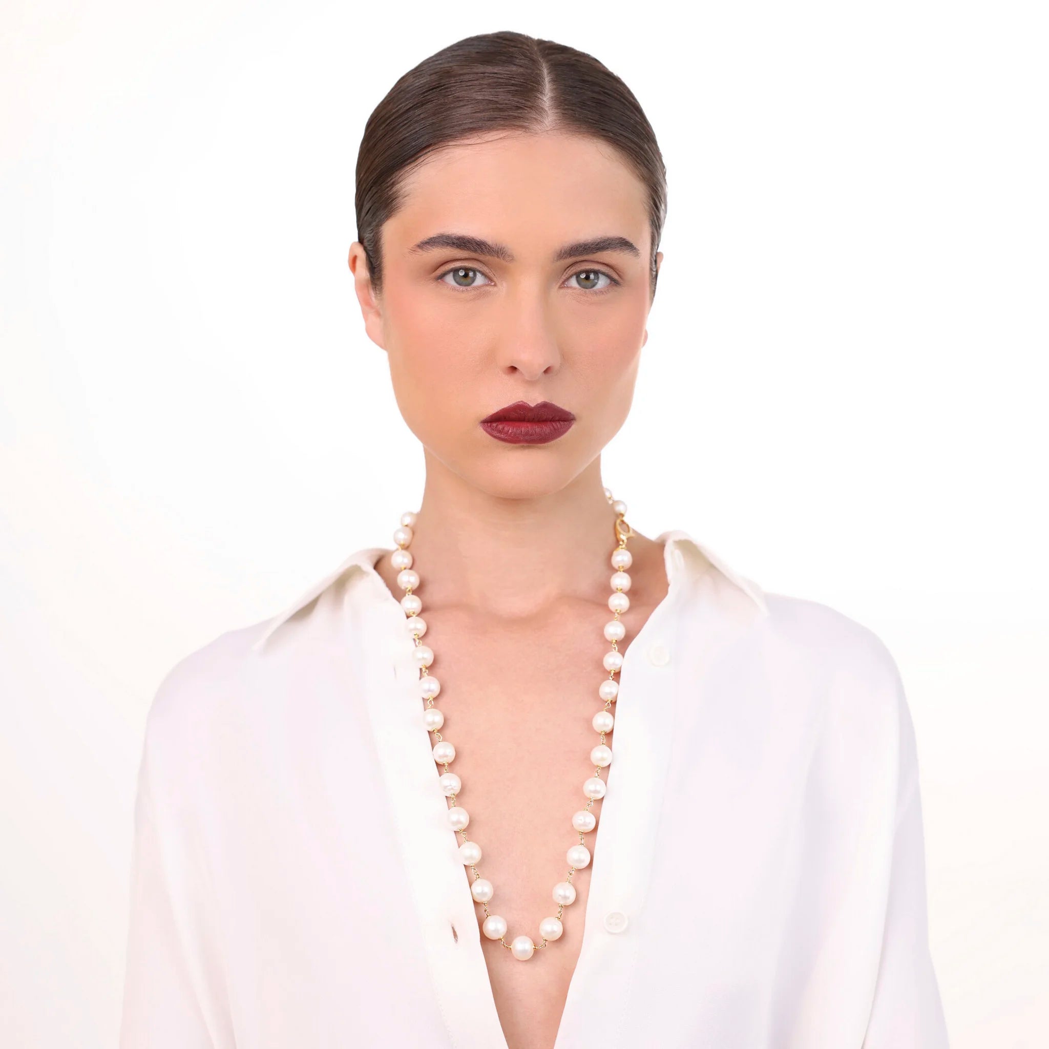 Long Rosary Necklace in 925 Silver plated with 18Kt Yellow Gold with White Freshwater Pearls Ø 10/11 mm