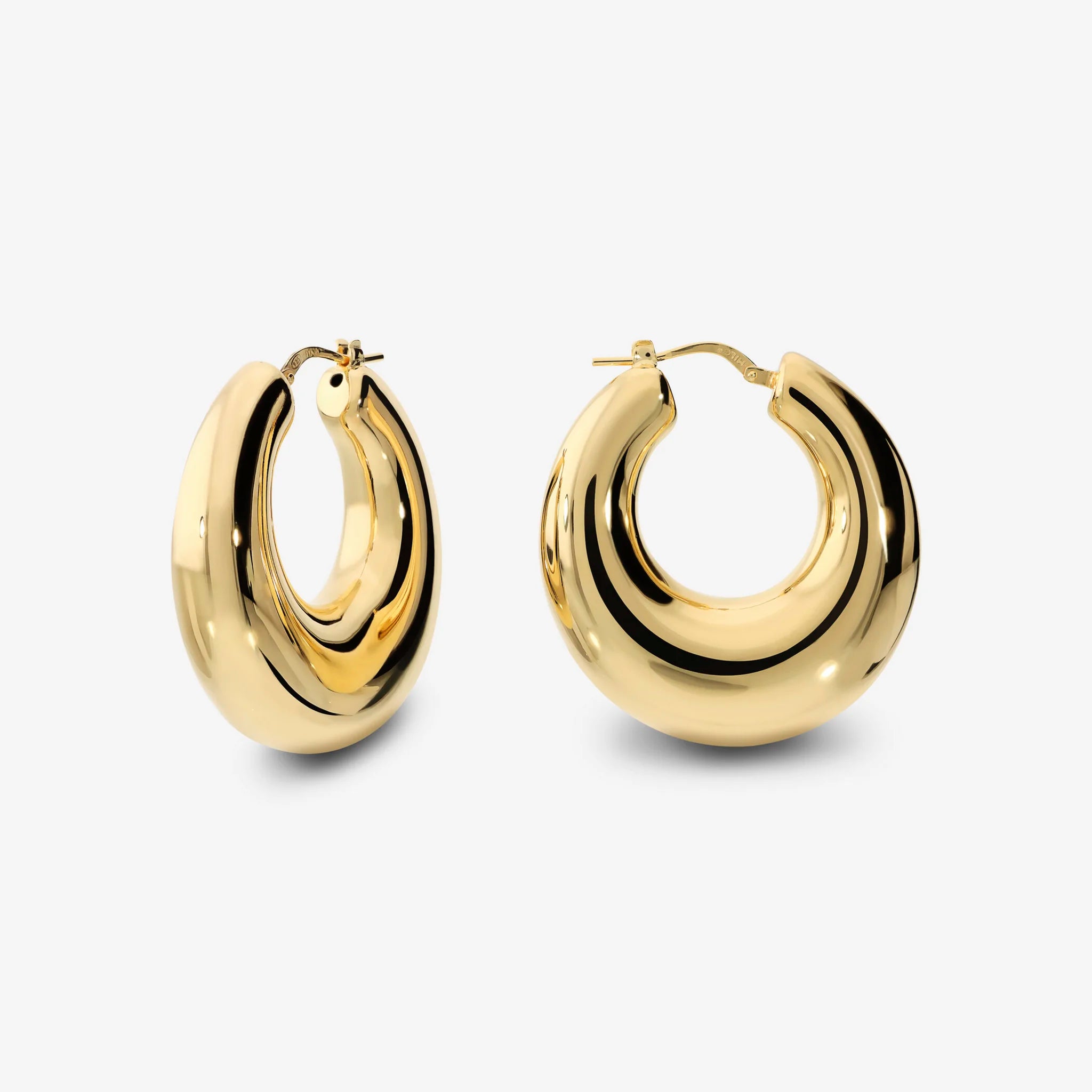 Electroformed graduated hoop earrings in 925 Silver plated with 18kt Yellow Gold. Glossy finish. Bayonet closure. External diameter 3.5 cm.
