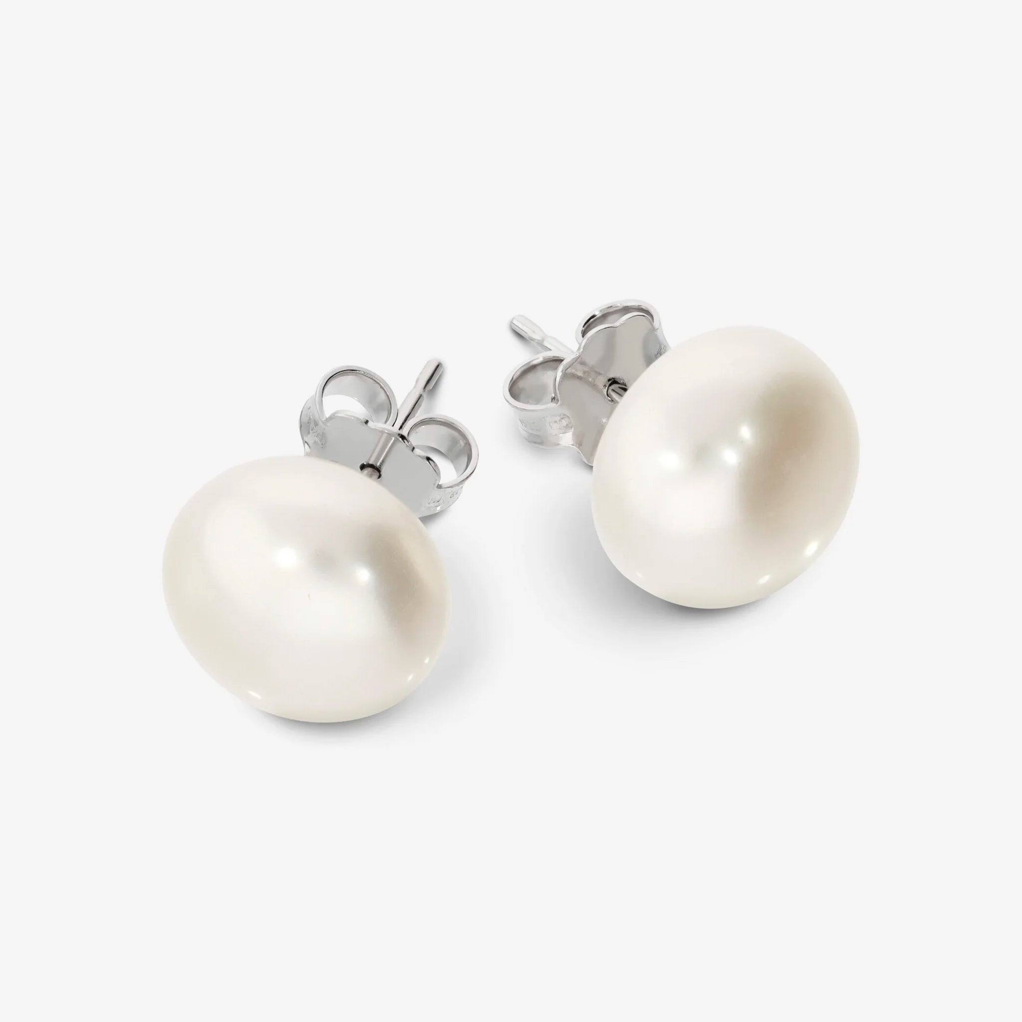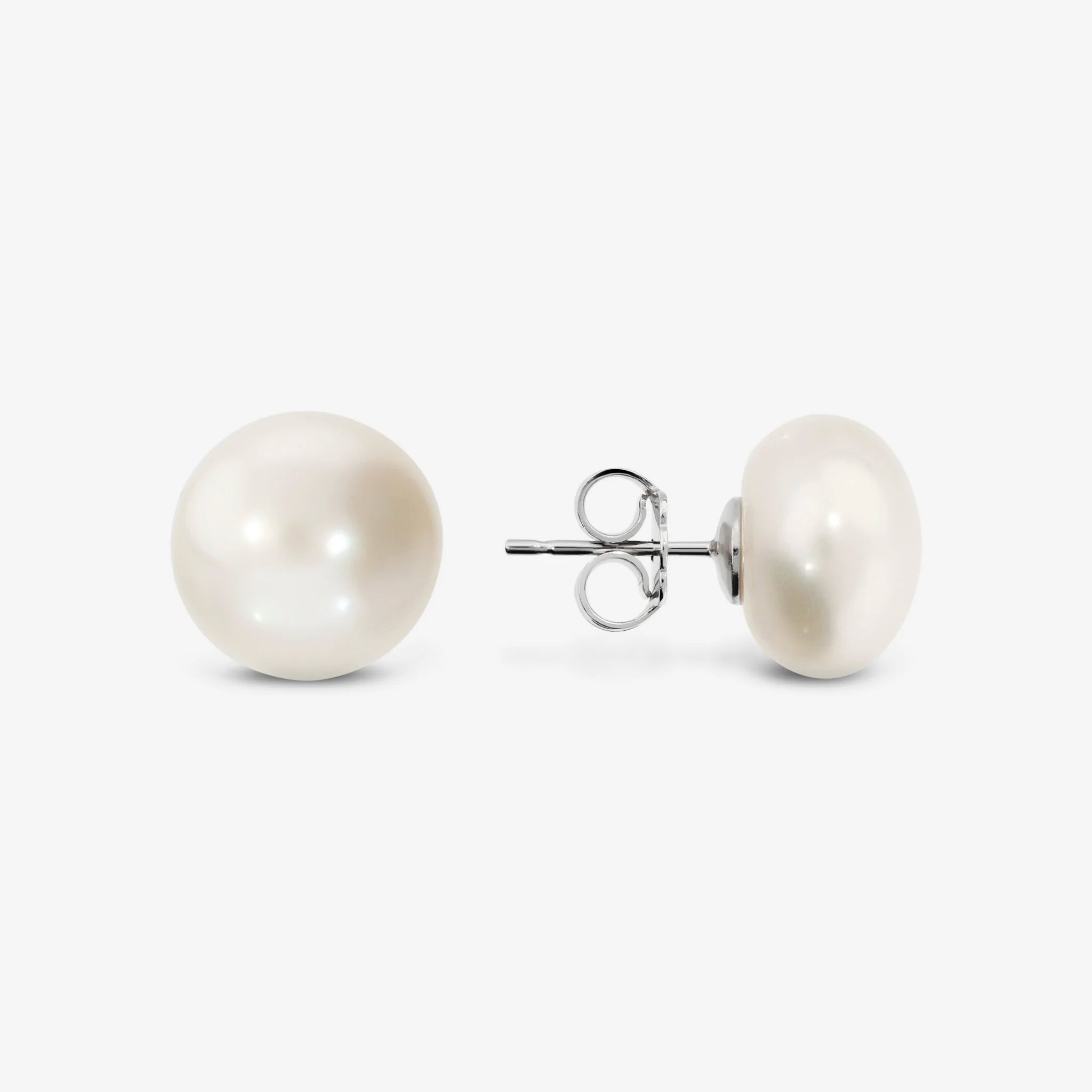 Earrings in 925 Silver plated with 18Kt White Gold with Button Freshwater Pearls Ø 12 mm