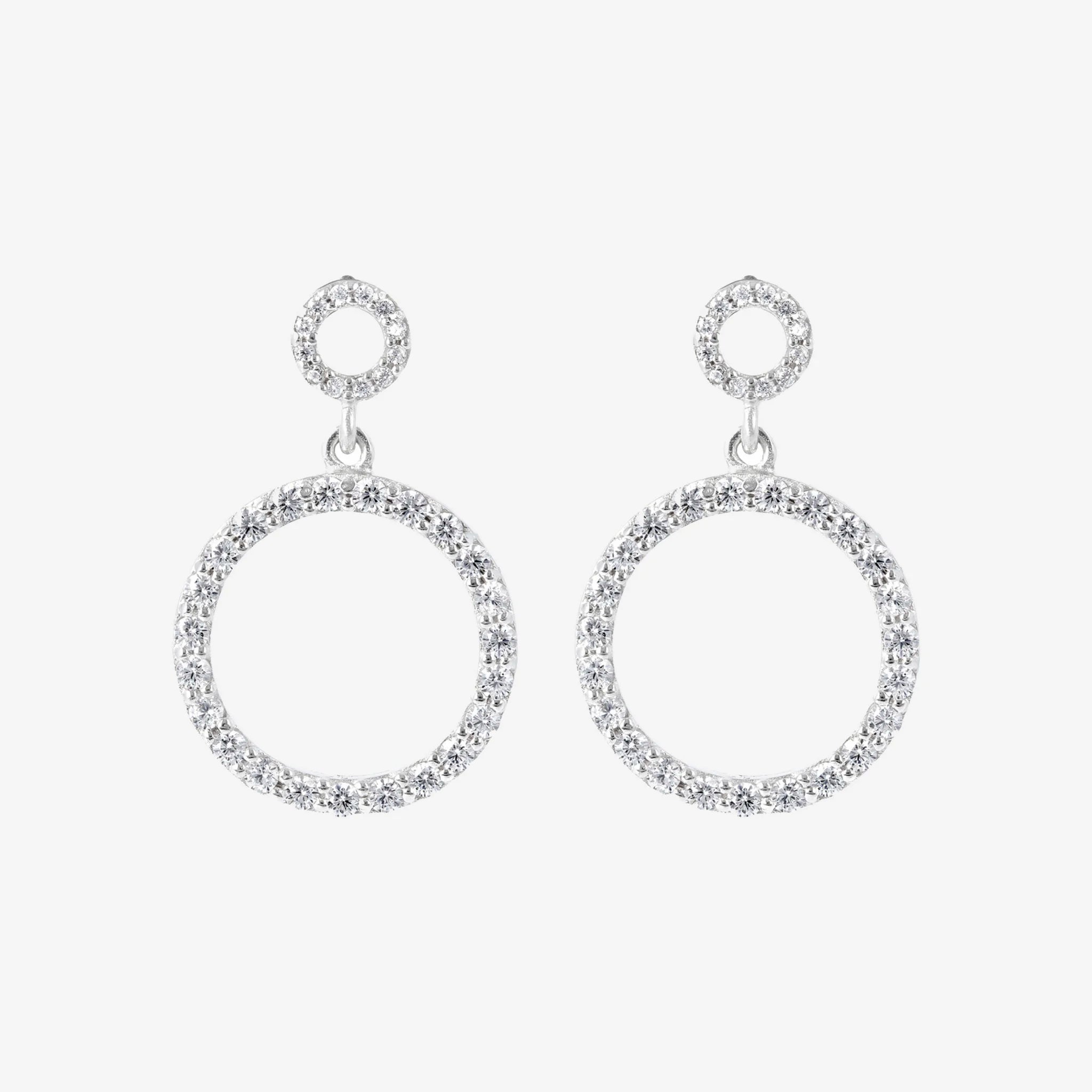 Double Circle Pendant Earrings in Silver with Cubic Zirconia