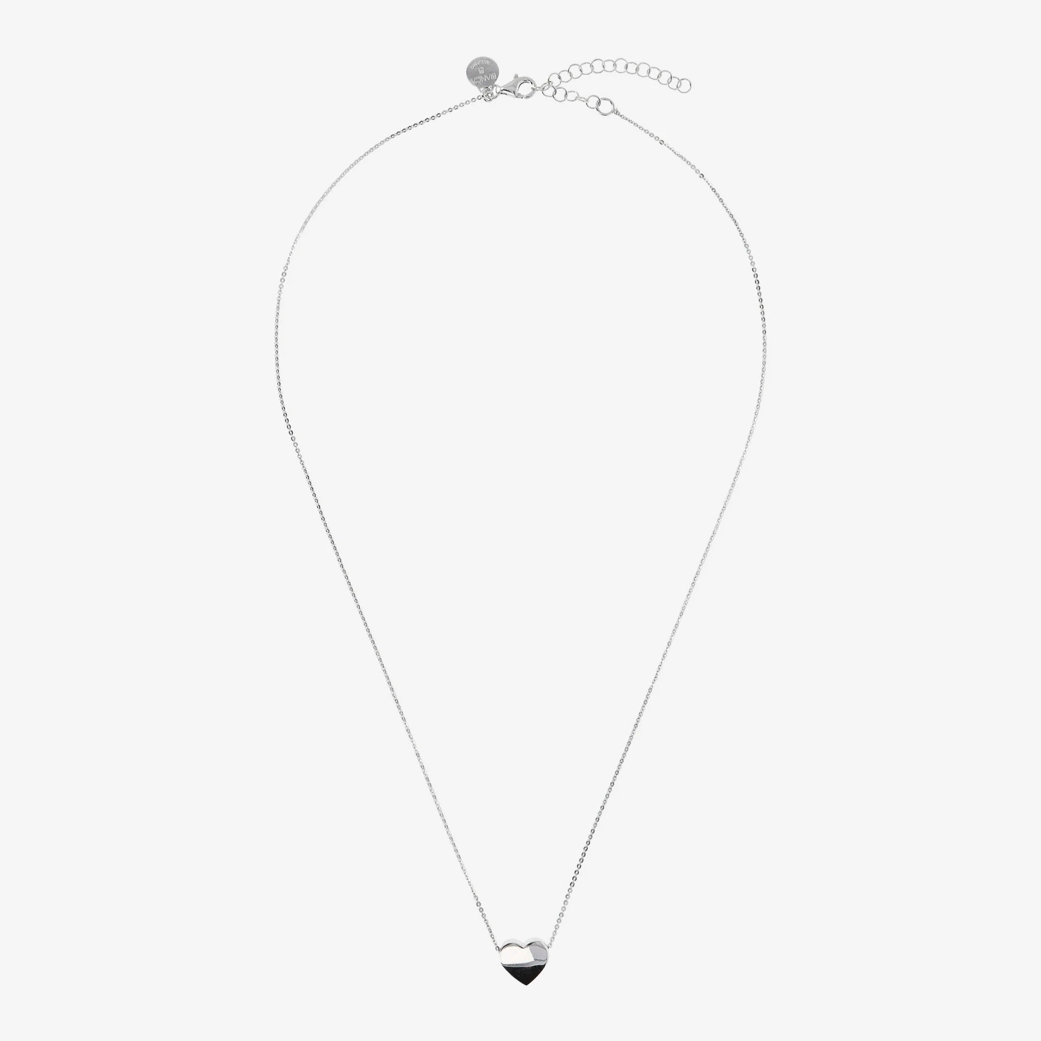 Necklace with Sliding Heart Pendant in Platinum Plated 925 Silver