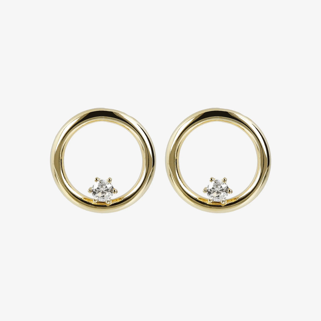 Circle Stud Earrings and Light Point in 9 Carat Gold Cubic Zirconia
