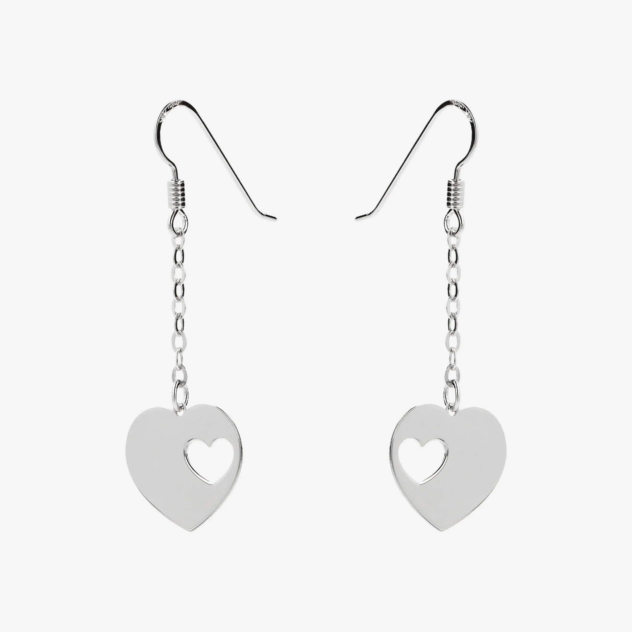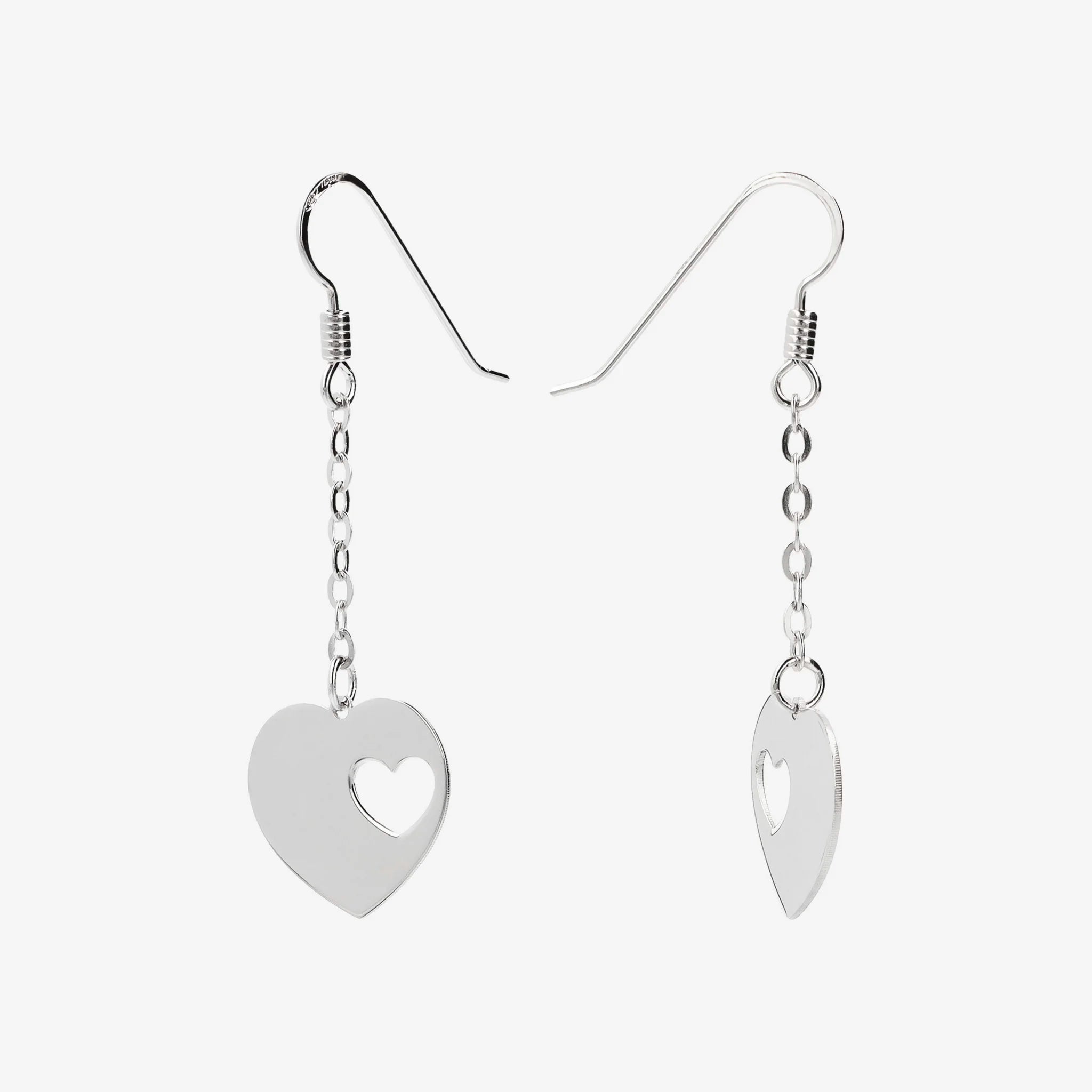 Heart Dangle Earrings in 925 Silver Plated Platinum
