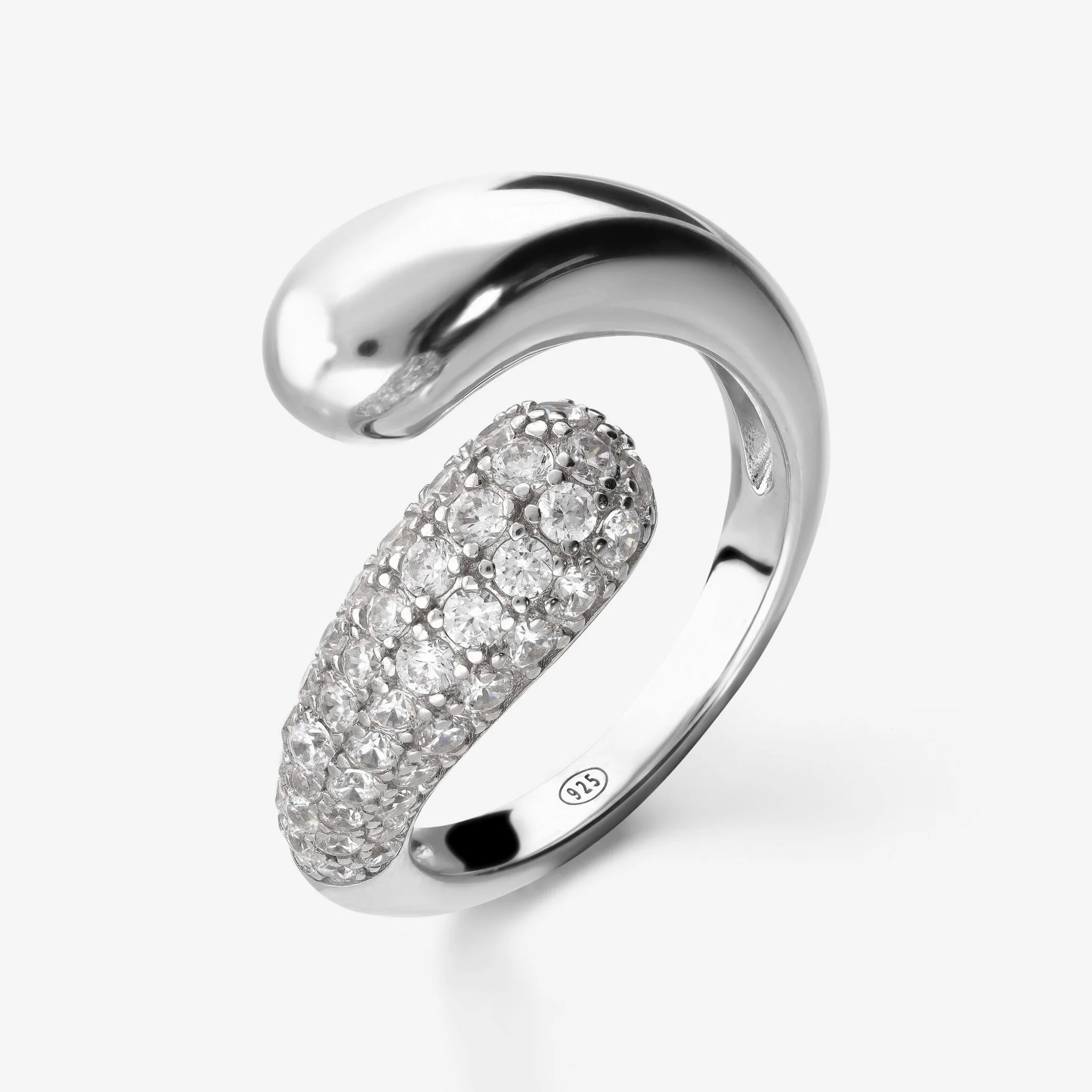 Contrarié Ring in 925 Silver plated Platinum with Pavé of Cubic Zirconia