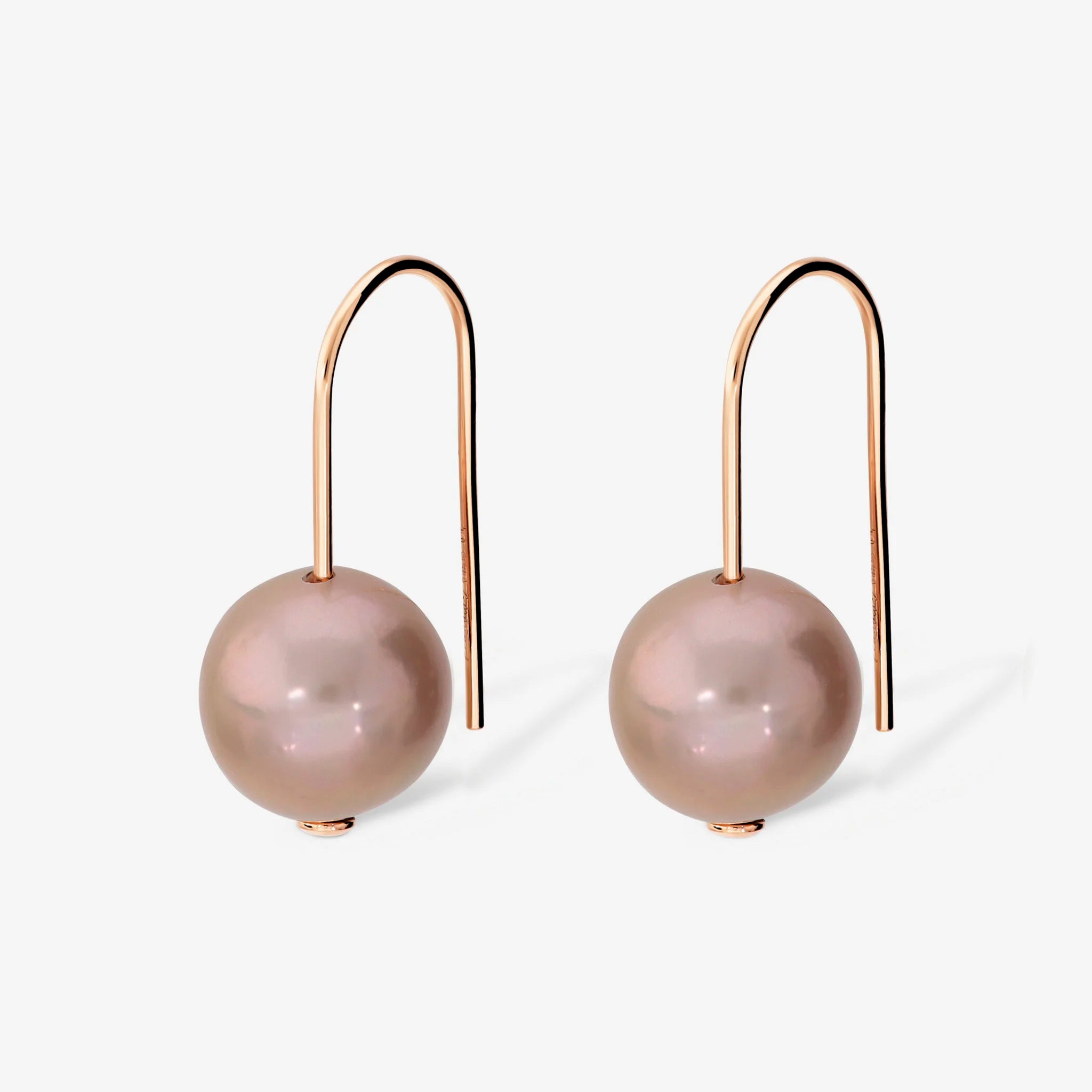 Pendant earrings in 18Kt gold-plated 925 silver with Ming freshwater pearls Ø 12/13 mm