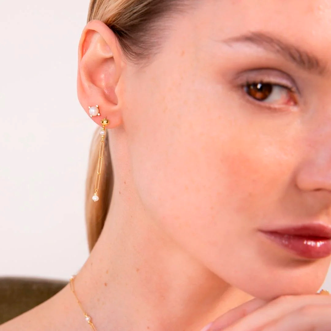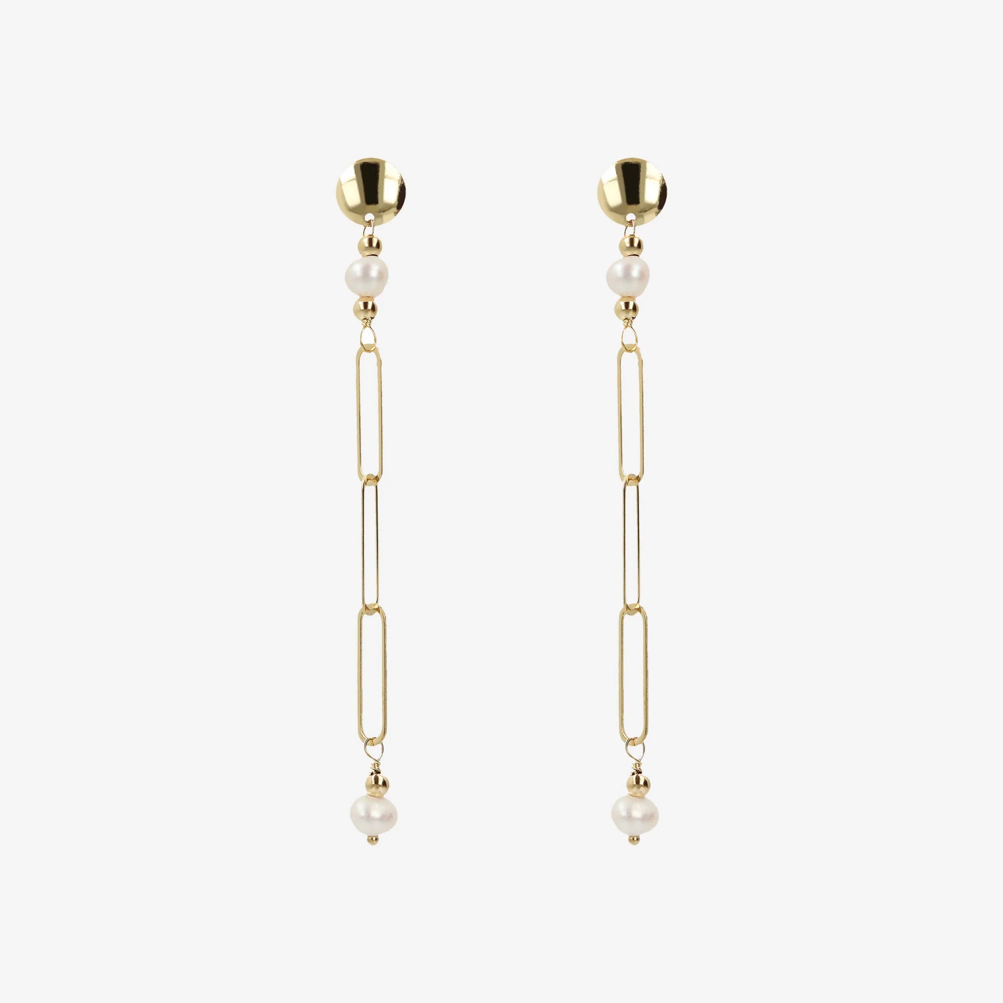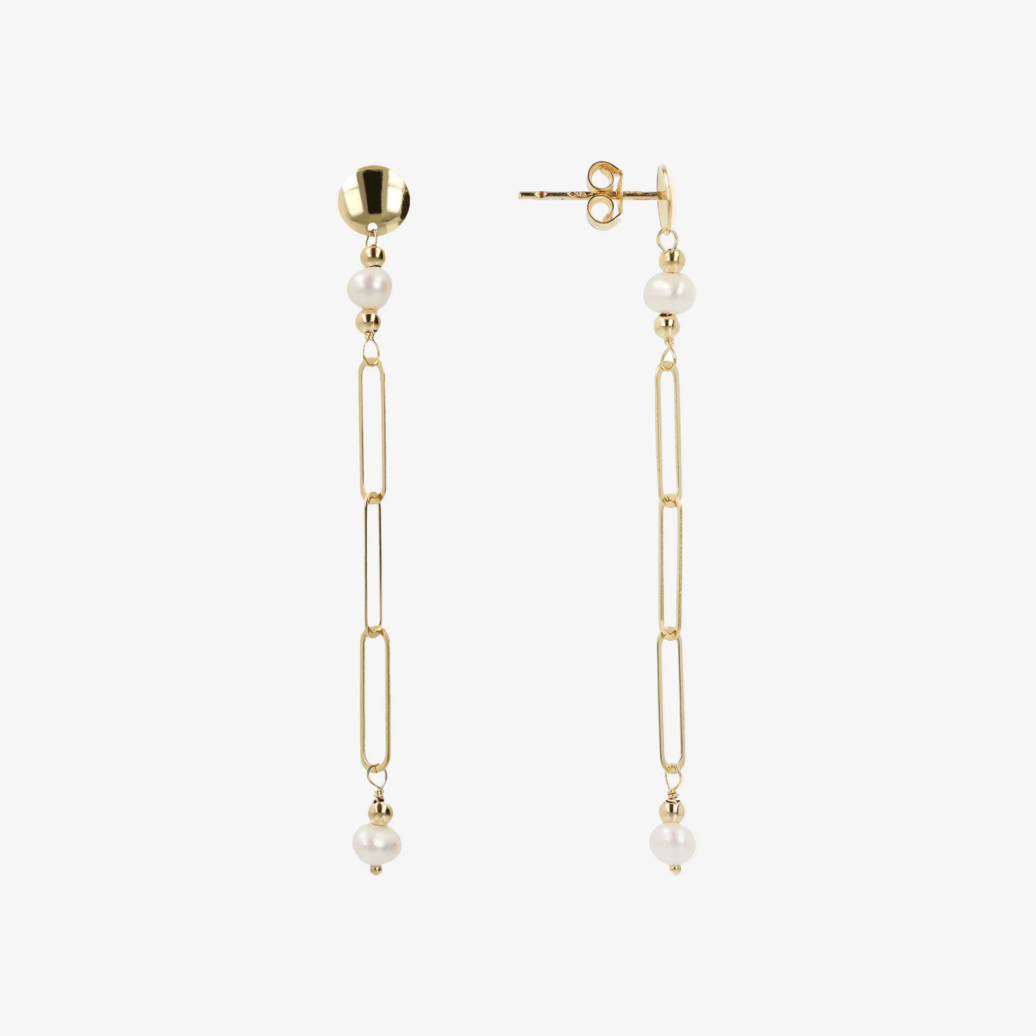 375 Gold Pendant Earrings with Elongated Forzatina Link and White Freshwater Pearls