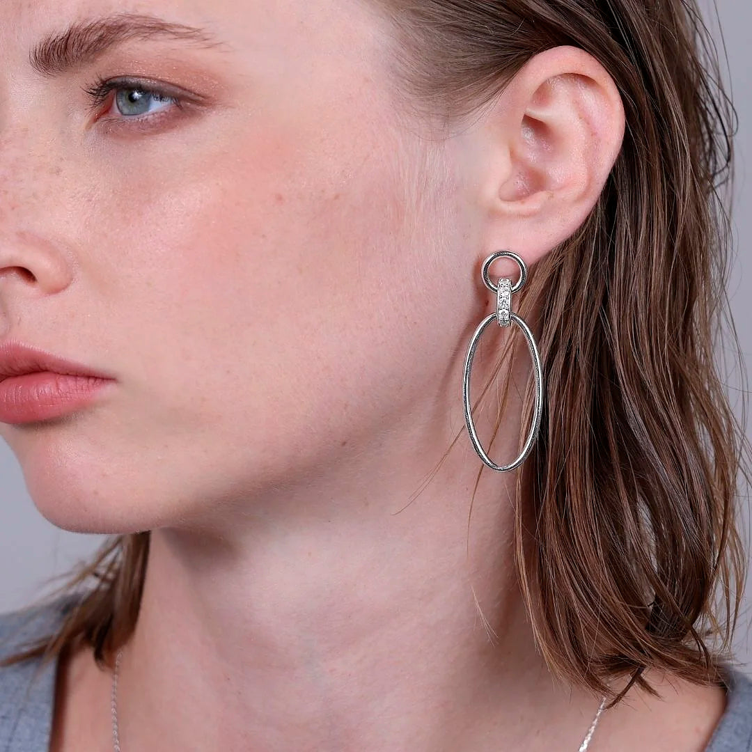 Oval Pendant Earrings in 925 Silver with Cubic Zirconia