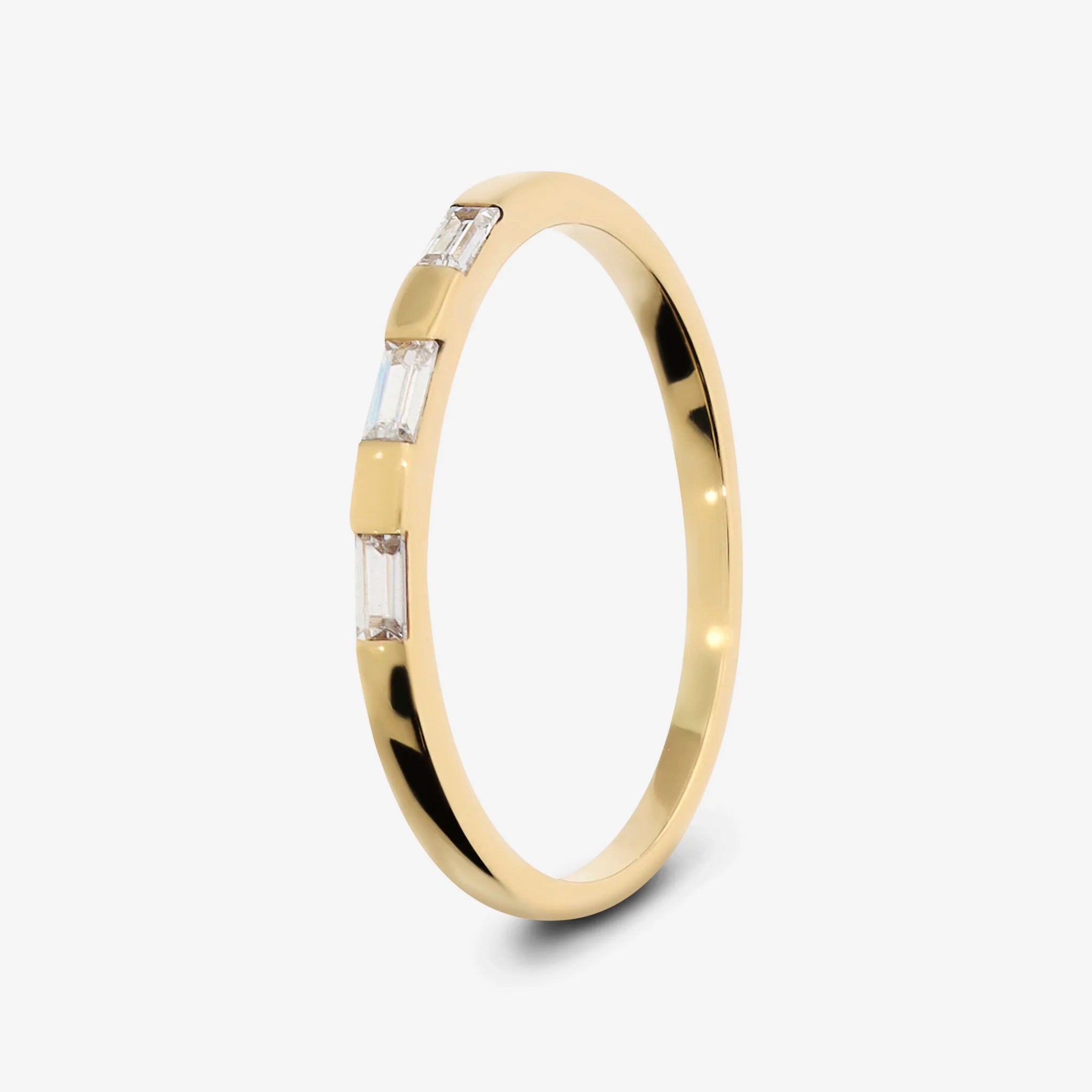 Trilogy Ring with Baguette Cubic Zirconia 375 Gold