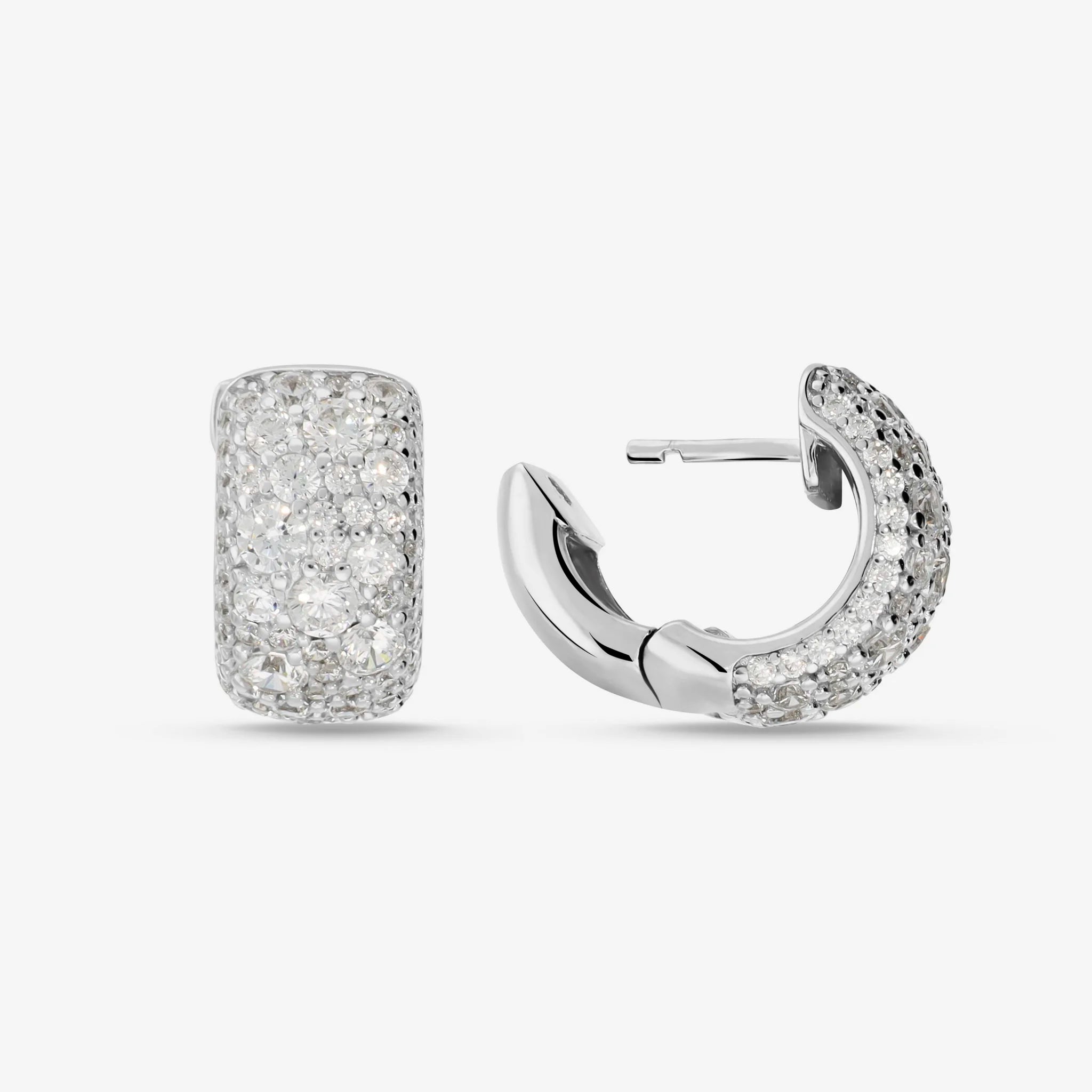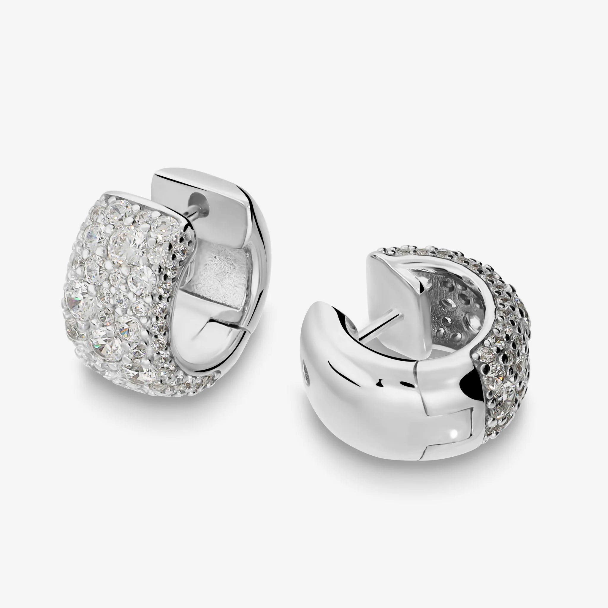 Orecchini a Cerchio in Argento 925 placcato Platino con Pavé di Cubic Zirconia