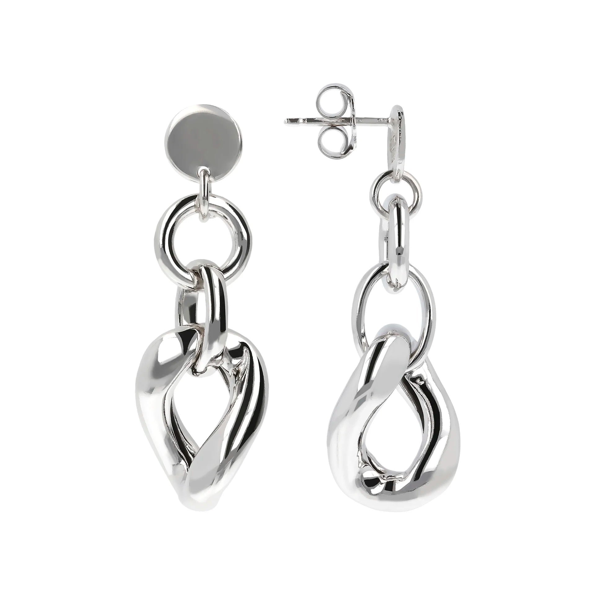 Drop Earrings with Grumetta Links in 925 Silver Plated Platinum