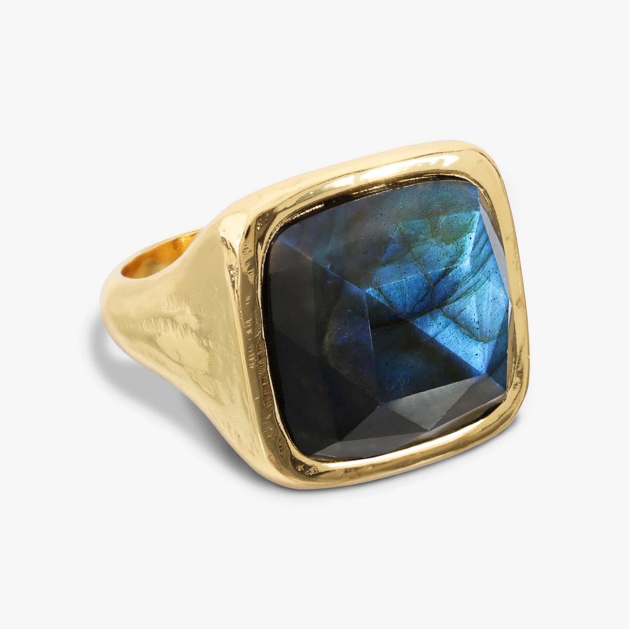 Anello Chevalier Martellato en Argent 925 plaqué Or Jaune 18Kt avec Labradorite