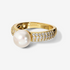 Anneau en Argent 925 plaqué Or Jaune 18Kt avec Zircone Cubique et Perle Blanche d'Eau Douce Ø 7/8 mm