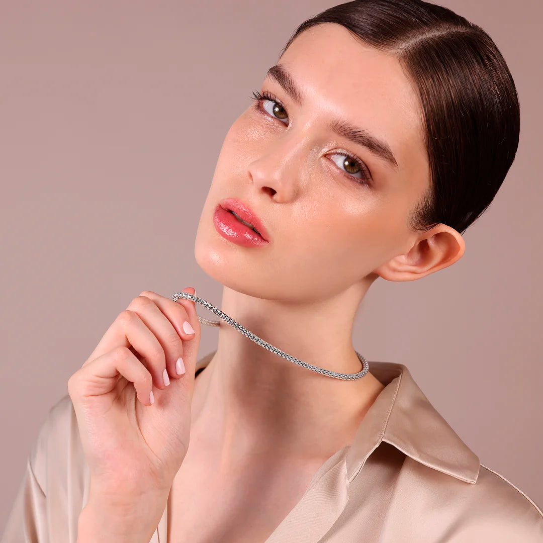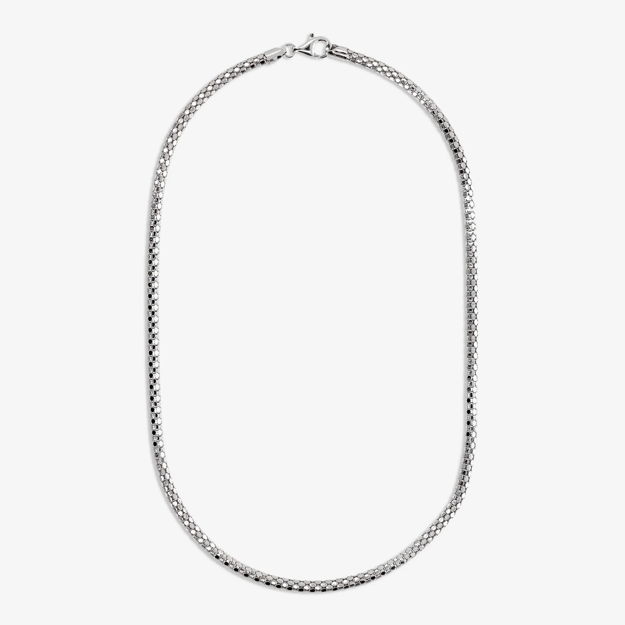 Collier ras du cou à maillons Popcorn en argent 925 platiné.