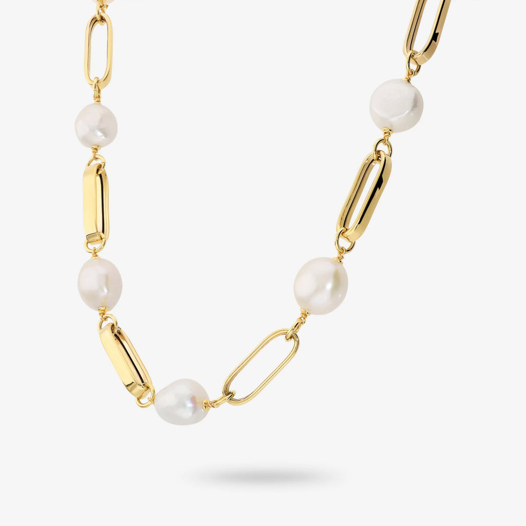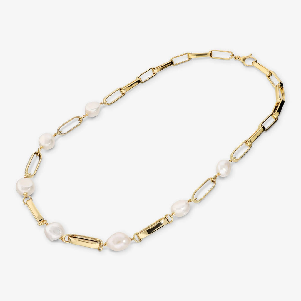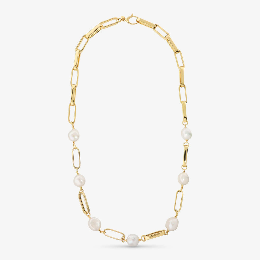 Sautoir en Argent 925 Plaqué Or Jaune 18 Carats avec Perles baroques d'eau douce blanches Ø 12/14 mm