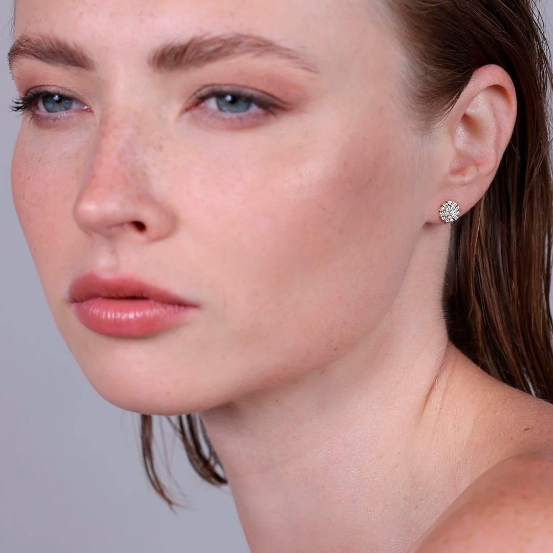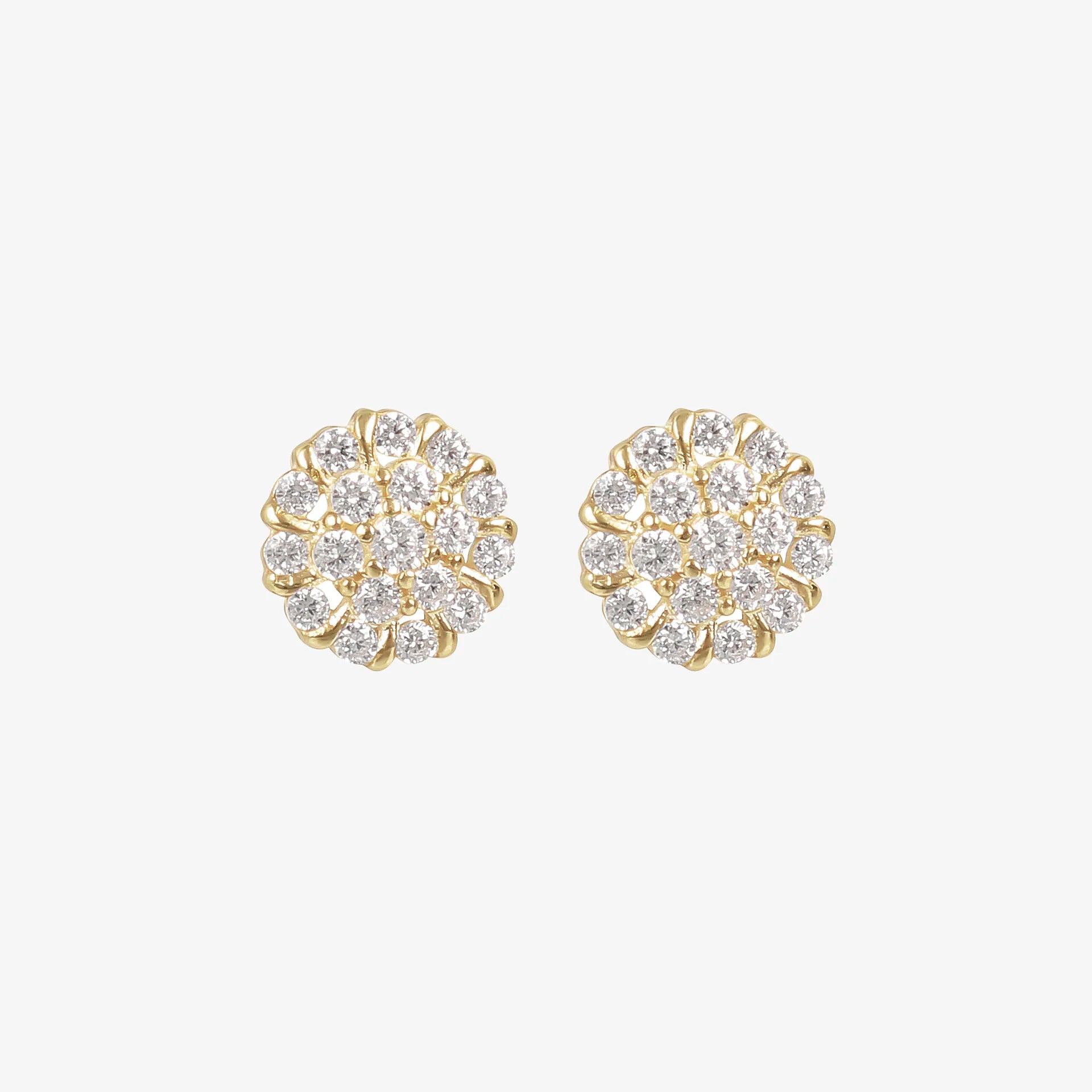 Boucles d'Oreilles Tige Fleur Pavée en Or 9 Carats Cubic Zirconia
