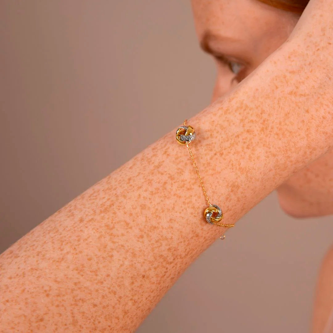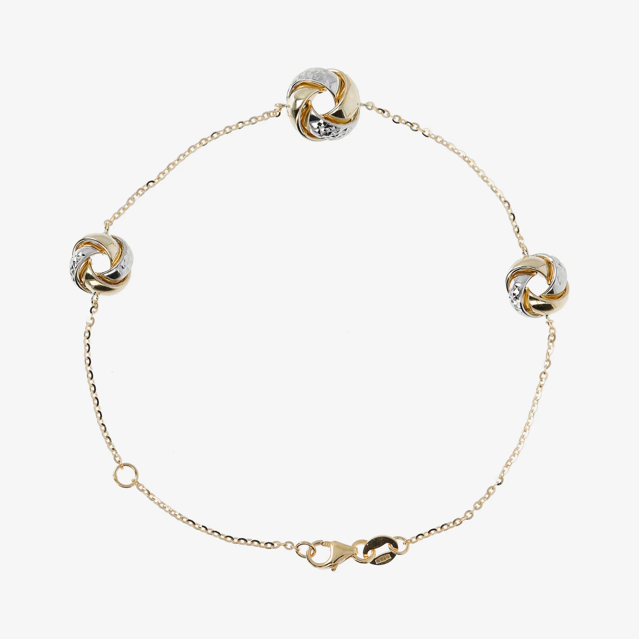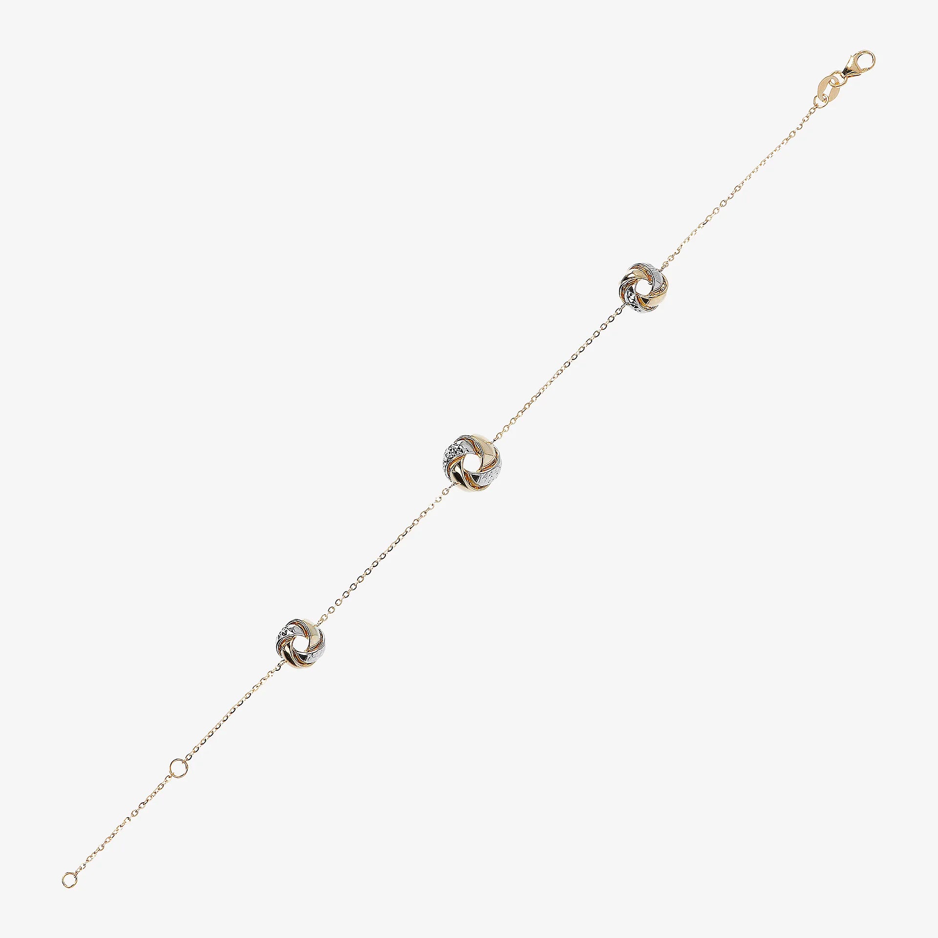 Bracelet chaîne forçat avec Nœuds Bicolores Or 9 Carats