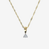 Collier maillon Singapour en or 375/1000 avec diamant synthétique (poids total 0,08 ct). Monture triangulaire à trois branches. Longueur chaîne 45 cm avec anneau placé à 42 cm. Fermoir mousqueton.