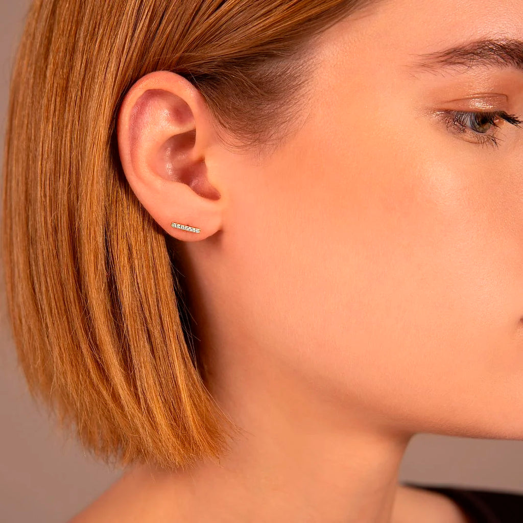 Boucles d'oreilles Lobe Barre avec Zircons Cubiques Or 375