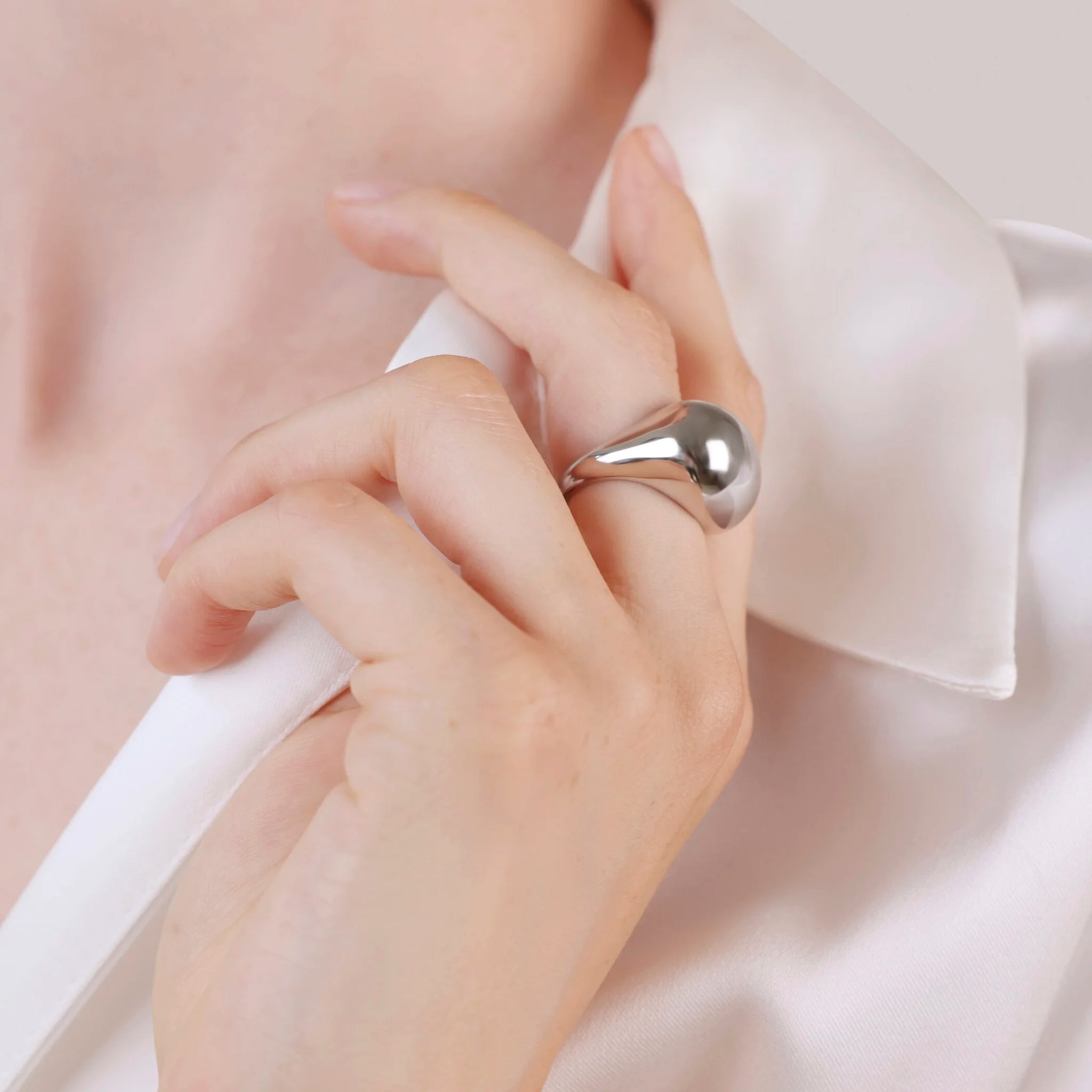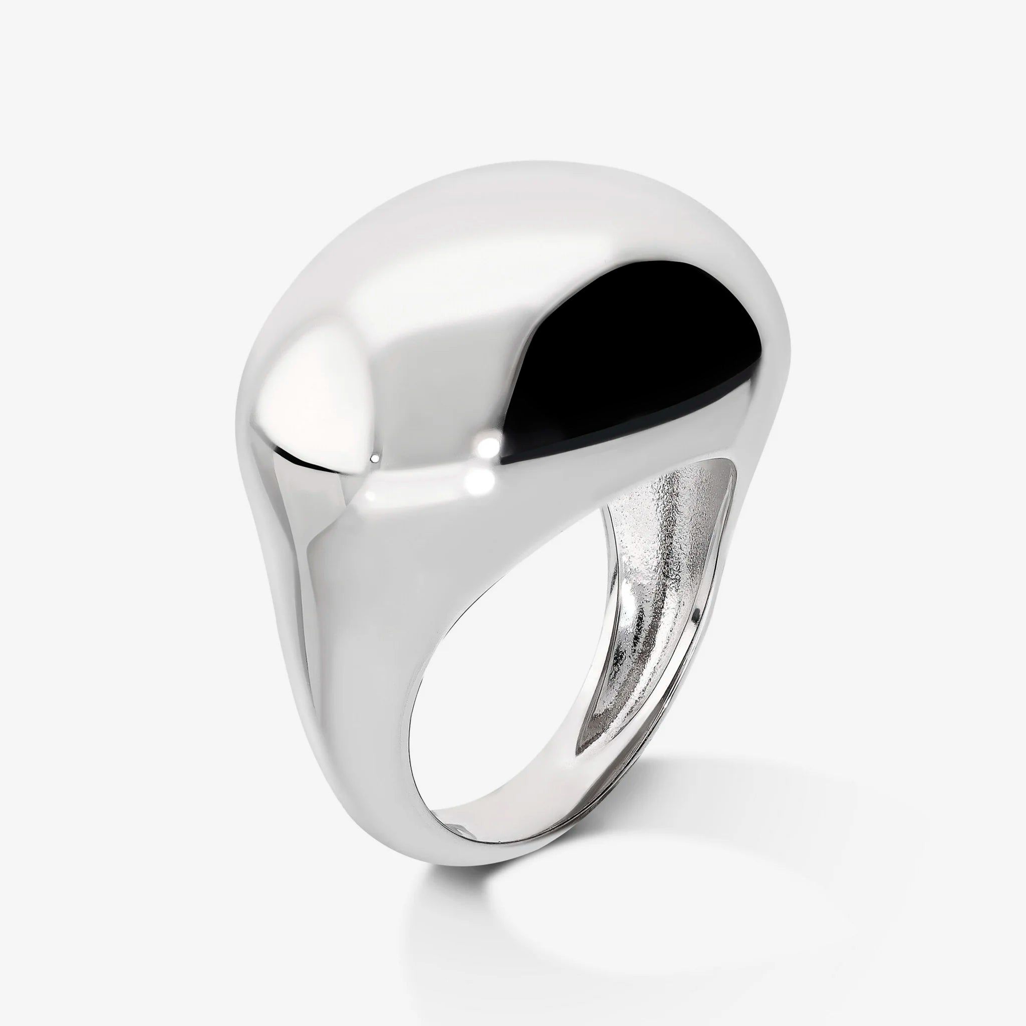 Bague cocktail design en Argent 925 plaqué Platine. Finition brillante. Dimensions du dessus 26x17 mm.