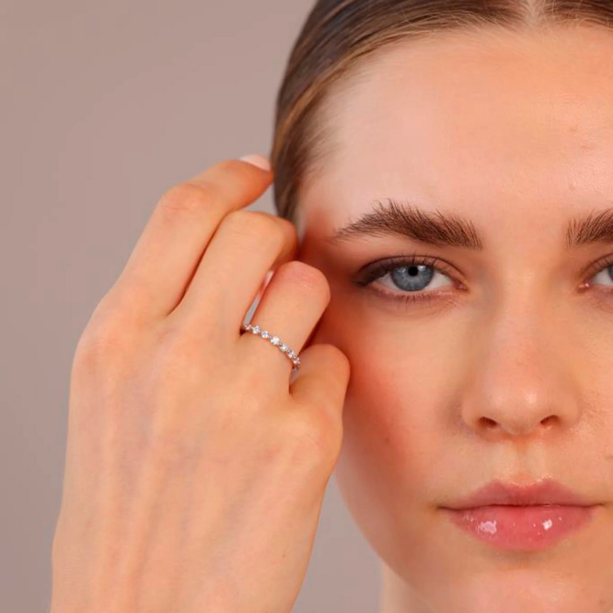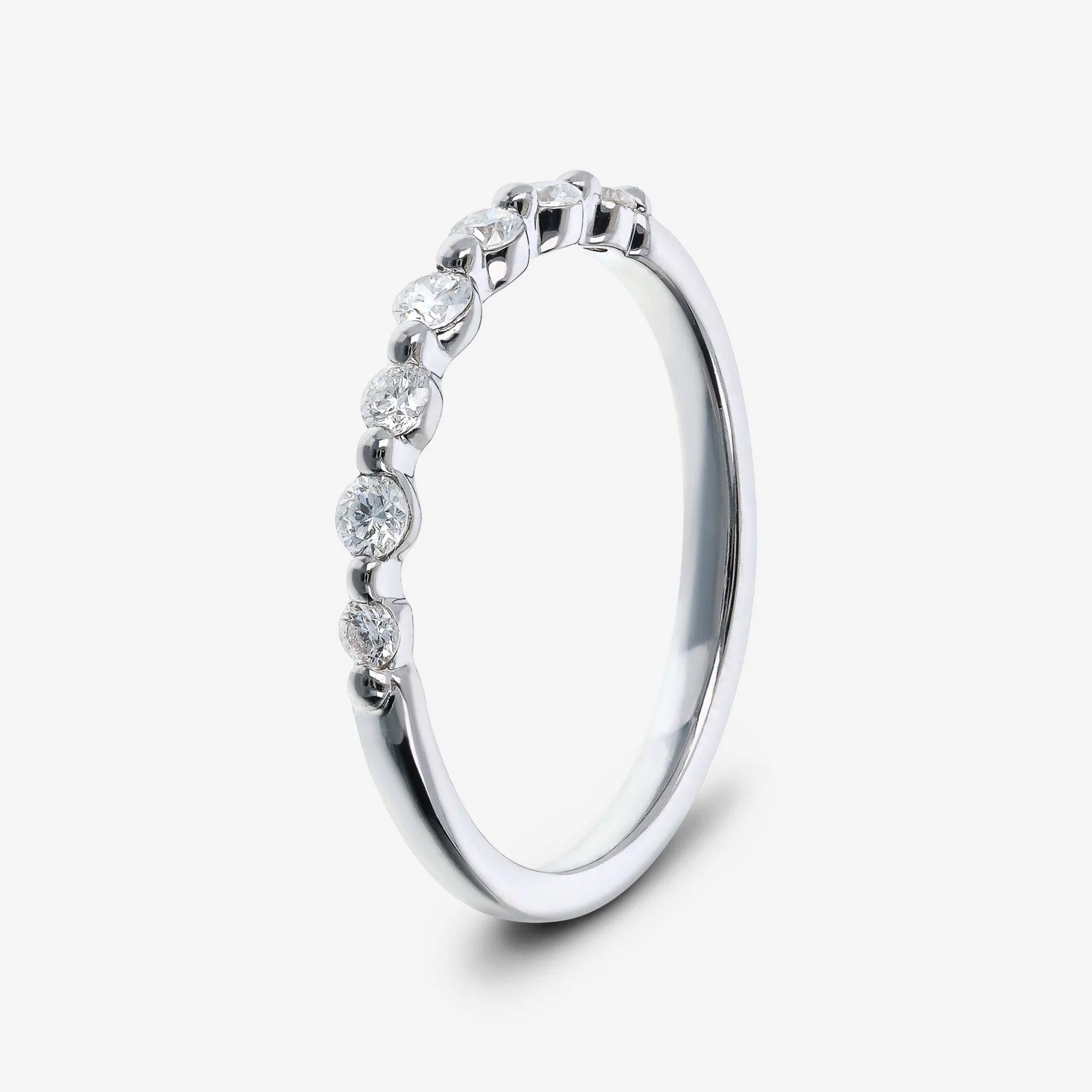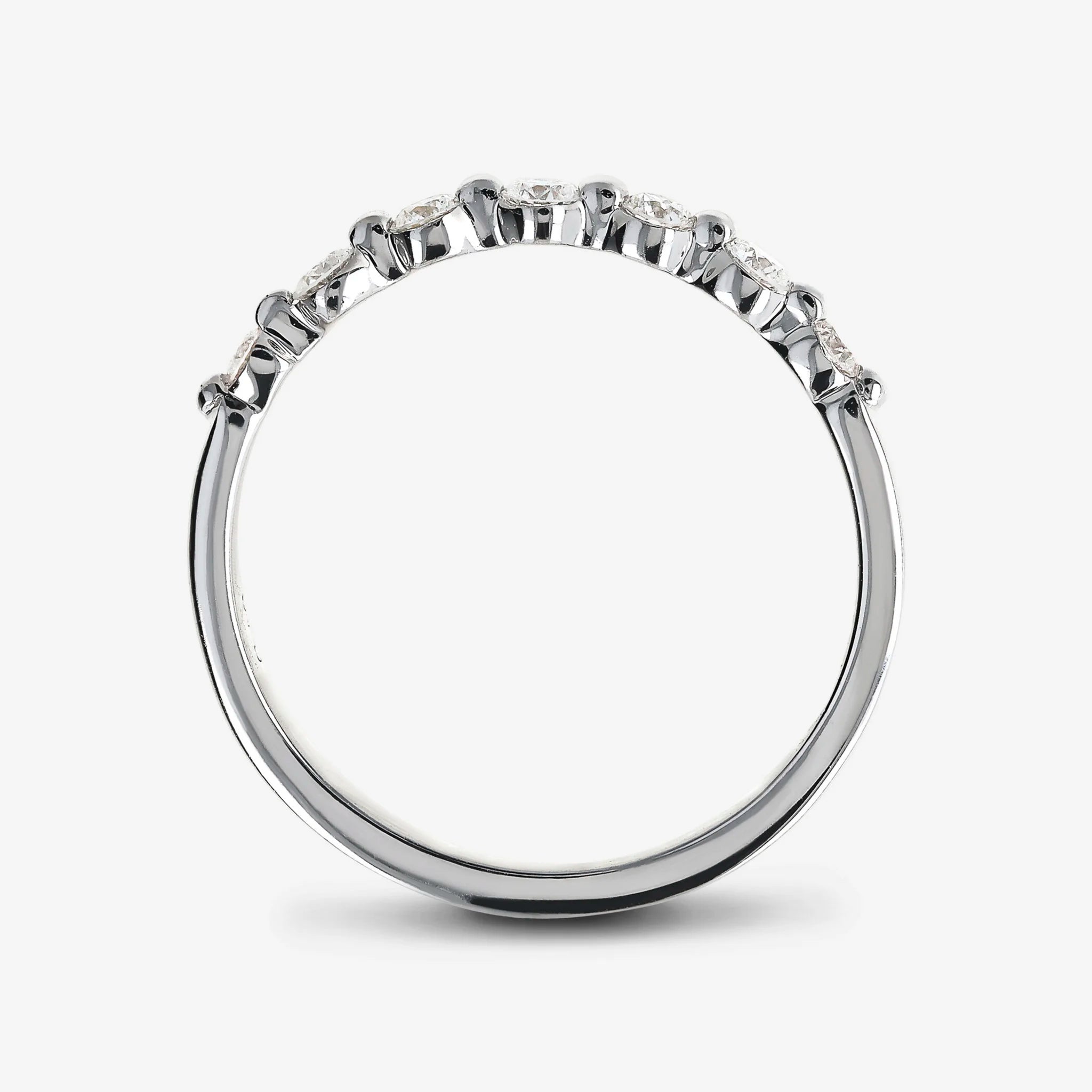 Bague Riviera en or blanc 375/1000 avec diamants de synthèse (poids total 0,253ct). Monture à griffes rondes.