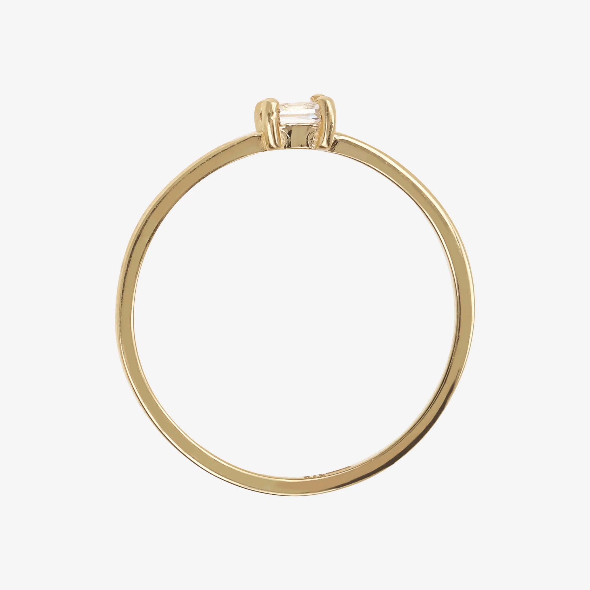 Bague solitaire en or 375 avec zircons cubiques taille baguette