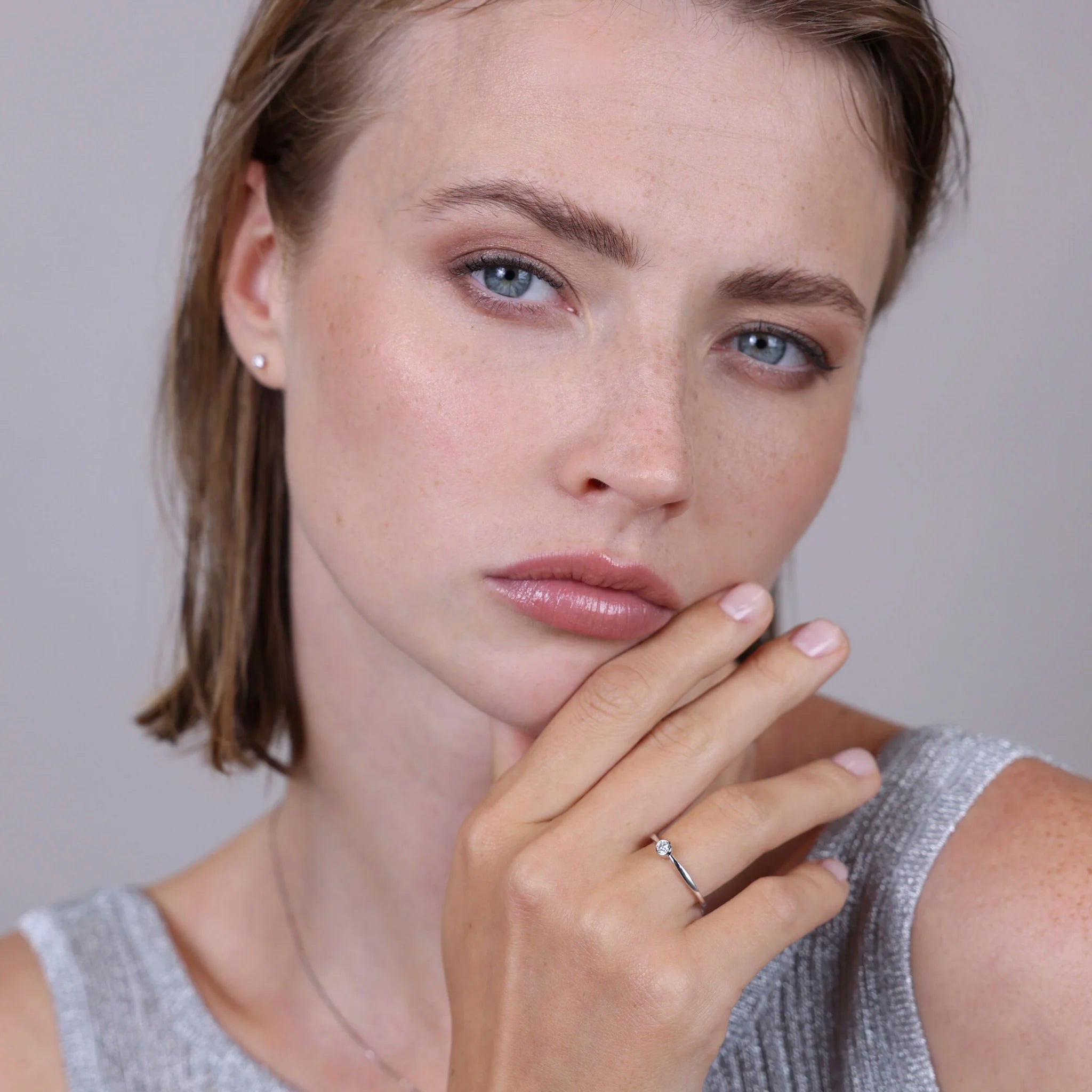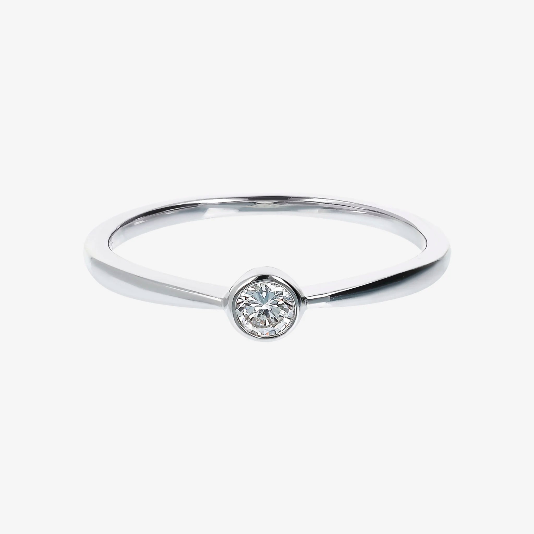 Bague solitaire en or blanc 375 avec diamant cultivé en laboratoire 0,153 ct